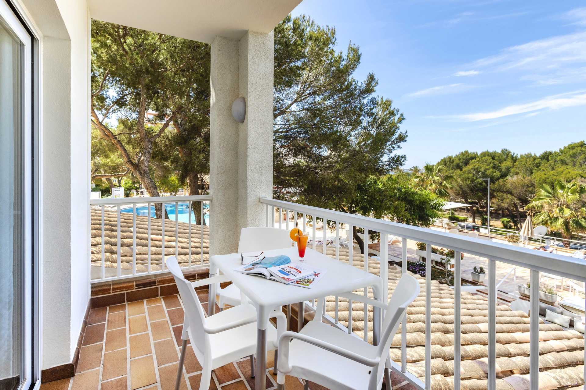 Kaksio parvekkeella tai terassilla. Makuuhuone sekä yhdistetty olohuone ja minikeittiö. Kaksi yhden hengen sänkyä. Lisävuodemahdollisuus vuodesohvasta. Minikeittiö, jossa jääkaappi, keittolevyt, kahvinkeitin, mikroaaltouuni, vedenkeitin ja peruskeittiövälineet. Maksuton wifi ja ilmastointi. Tallelokero lisämaksusta. Hiustenkuivain. Amme ja wc. Siivous 7 krt/viikko.