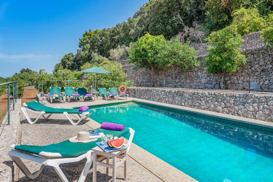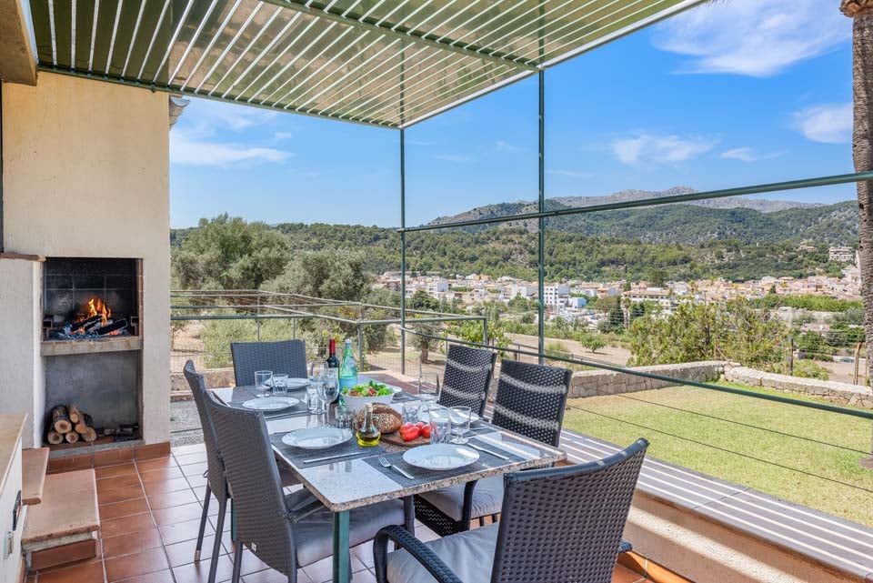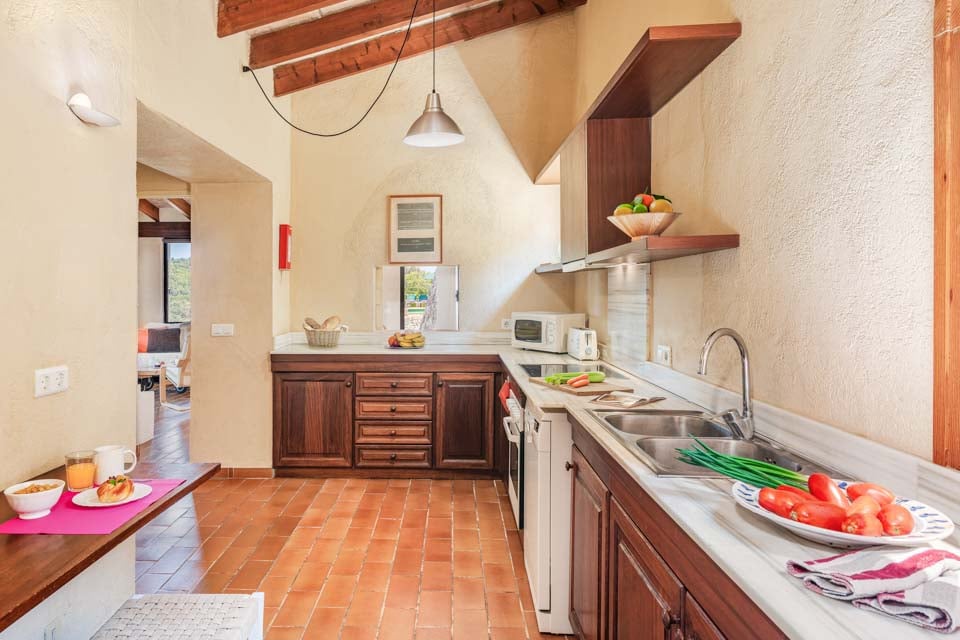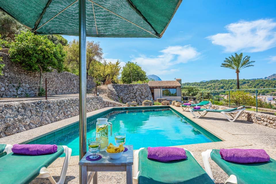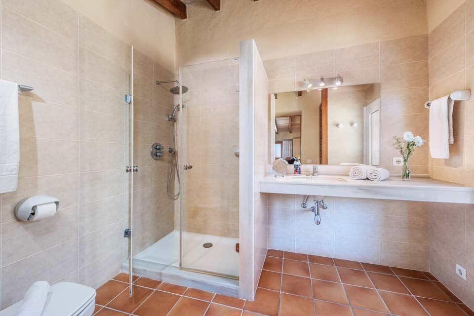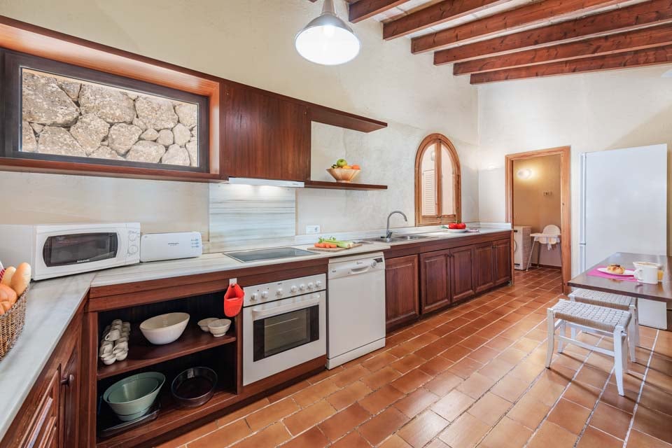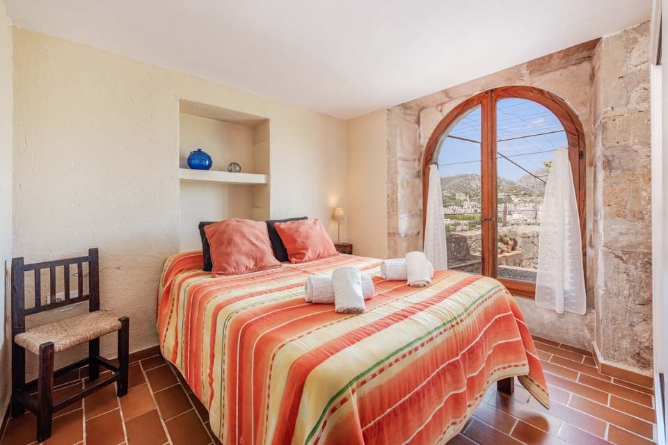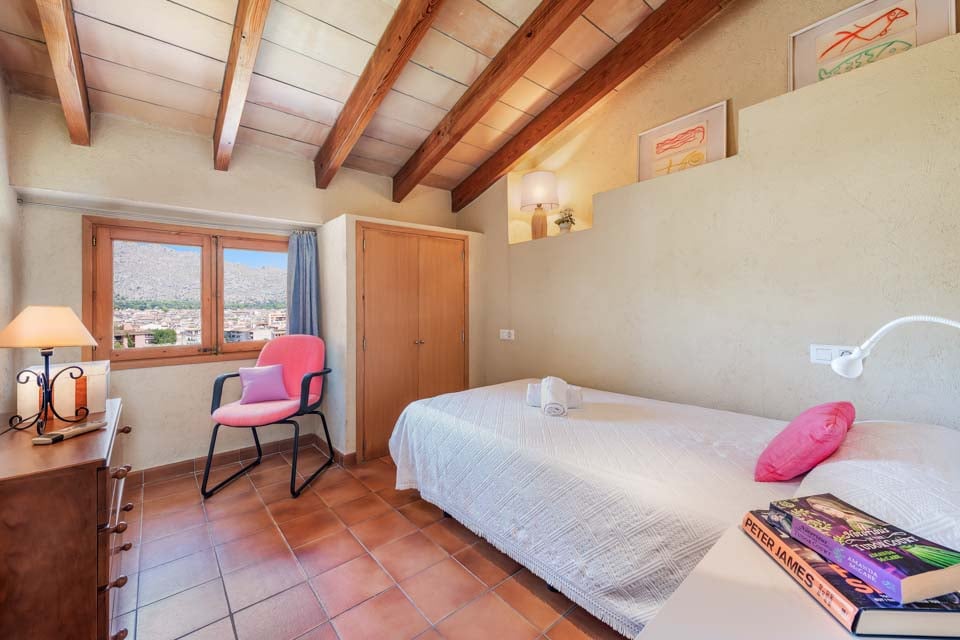 Sisältä huvila on sisustettu perinteiseen mutta hienostuneeseen tyyliin mukavuus mielessä pitäen. Jokaisessa makuuhuoneessa on ilmastointi ja oma kylpyhuone, ja olohuoneessa on suuret panoraamaikkunat, joten voit viilentyä sisällä samalla kun ihailet kaunista maaseutumaisemaa. Jos haluat tutustua kauemmas ja nauttia paikallisista rannoista, suositut merenrantakohteet Puerto Pollensa ja Puerto Alcudia ovat molemmat helpon ajomatkan päässä.