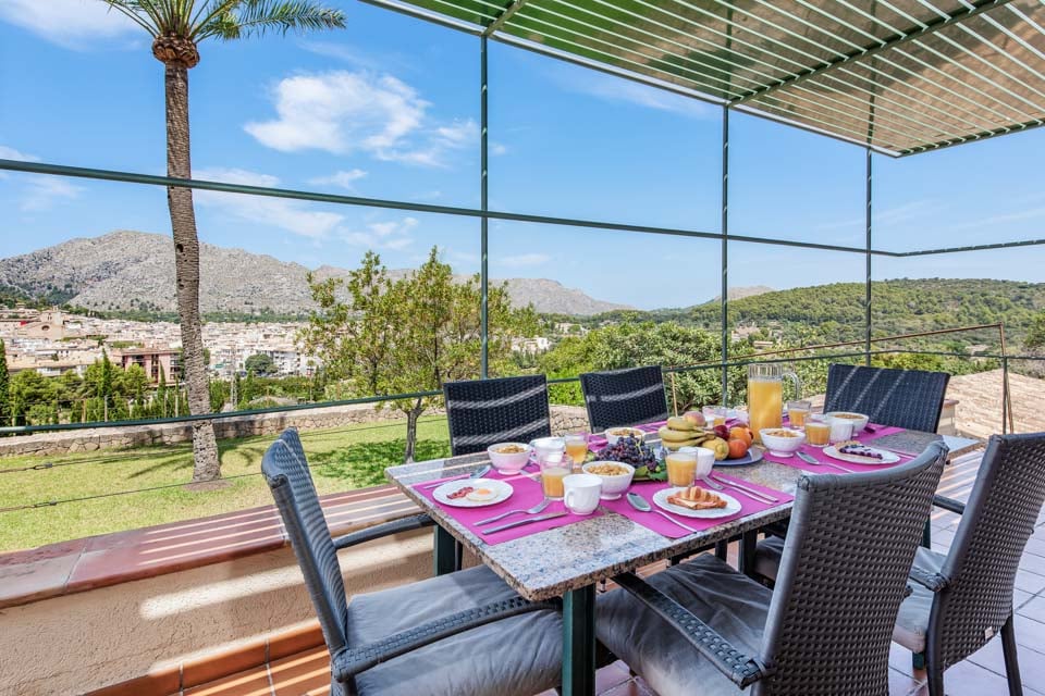 Korkealla Puig Maria -vuoren rinteellä sijaitseva Ca Na Copea tarjoaa upeat näkymät Mallorcan maaseudulle ja viehättävään Pollensan vanhaankaupunkiin, joka hohtaa yöllä luoden upean taustan rentouttaville iltoille terassilla. Pollensan vanhakaupunki on kävelymatkan päässä huvilasta niille, jotka haluavat ruokailla ulkona tai vain vaellella viehättävillä mukulakivikaduilla. Huvilan sijainnin vuoksi emme kuitenkaan suosittele tätä kävelyreittiä liikuntarajoitteisille.