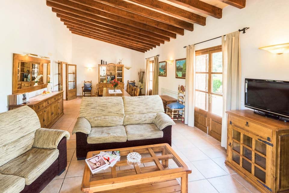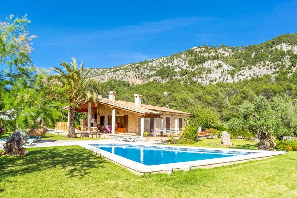Tämä perinteinen mallorcalainen kivihuvila sijaitsee hyvin yhteydessä olevalla alueella kauniilla maaseudulla, vain lyhyen ajomatkan päässä suositusta vanhasta roomalaisesta Pollensan kaupungista. Laajojen vuorten juurella koskemattomalla maaseudulla sijaitseva kolmen makuuhuoneen huvila on hiljainen, mutta lähellä moottoriteitä, jotka yhdistävät Mallorcan kaikki neljä kulmaa.
