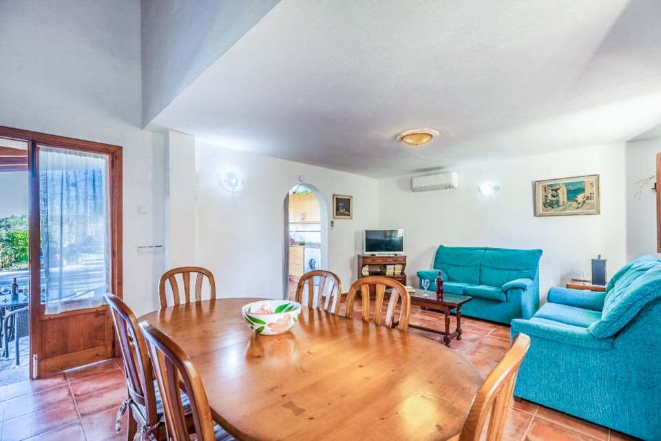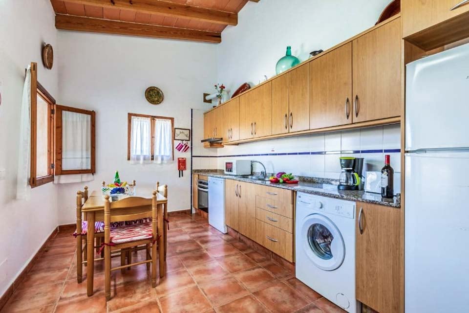 Espanjalaisen viehätyksen aarreaitta, joka henkii saaren tyypillistä perinteistä arkkitehtuuria upeine kiviseinineen, vihreine ikkunaluukuineen ja terrakottakattoineen. Olohuone huokuu maalaisromanttista viehätystä massiivipuukalusteineen, antiikkisine yksityiskohtineen ja raikkaan valkoisine seinineen. Olohuone on viihtyisä pehmeine sinisine sohvineen ja suuren kuuden hengen ruokapöydän vieressä. Liitteenä on viehättävä keittiö, jossa on tammiset kaapistot, huippuluokan kodinkoneet ja kaikki mitä saatat tarvita illallisen valmistamiseen. Kahden hengen makuuhuoneet (double ja twin) sijaitsevat erillään huvilasta kahden suihkuhuoneen vieressä.