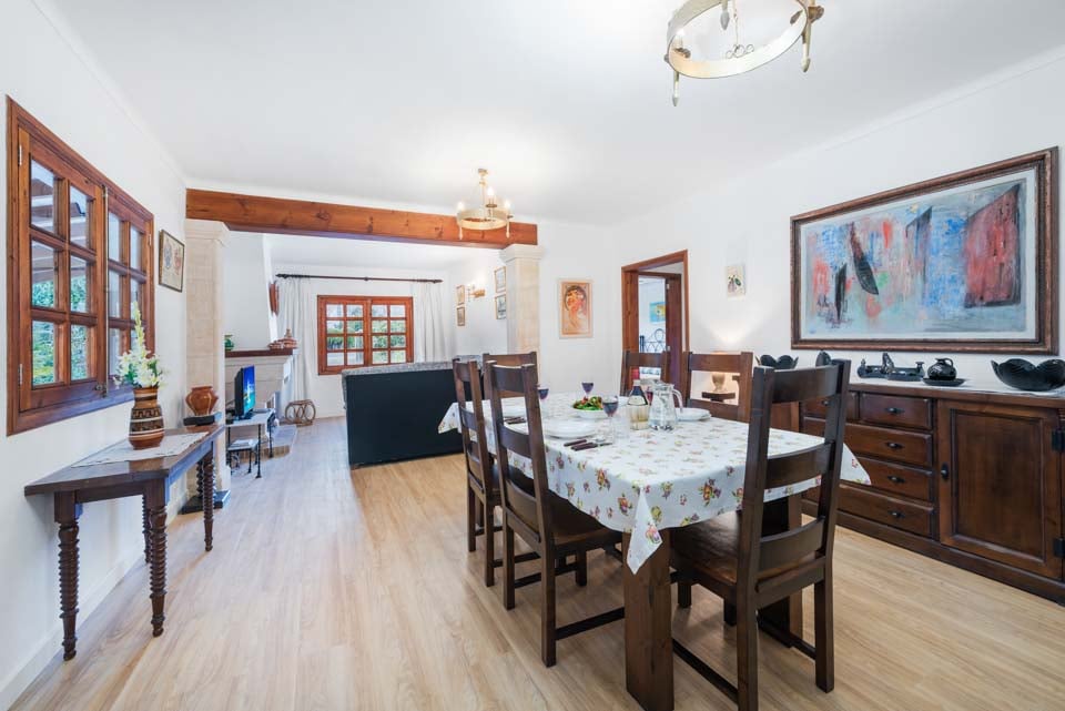 Huvila sijaitsee kokonaan yhdessä kerroksessa. Sisään astuessasi tulet ensin olohuoneeseen ja ruokailutilaan, jossa on suuri hyvin varusteltu keittiö, sekä tilavat, ilmastoidut makuuhuoneet, jotka sijaitsevat aivan pääoleskelutilan vieressä. Perinteinen mallorcalainen huvila ja loistava tukikohta, josta käsin voit nauttia kaikista upeista ympäröivistä lomakohteista.