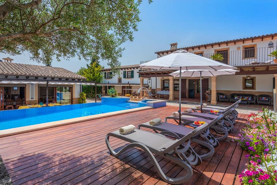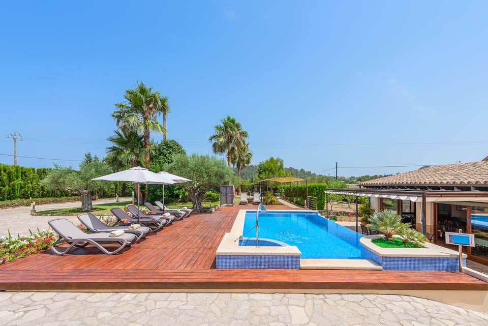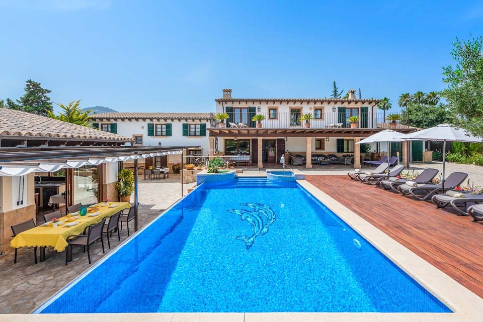 Can Bou on vaikuttava maaseutuhuvila, joka sijaitsee suosittujen Pollensan ja Puerto Pollensan lomakohteiden välissä. Tämä upea huvila on jaettu kahteen erilliseen osaan, joten se sopii erinomaisesti suurille perheille ja yhdessä matkustaville ystäville, jotka haluavat silti yksityisyyttä. Suurella ja tilavalla uima-allasterassilla on runsaasti aurinkotuoleja ja terassialue, joka johtaa kutsuvalle uima-altaalle. Uima-allasalueelta on käynti myös erilliseen keittiöön, jossa on suihkuhuone. Katetulla terassilla on rottinkisohvia ja ulkoruokailutila, jos haluat pitää taukoa Välimeren auringosta. Pohjakerroksessa on makuuhuone ja loput makuuhuoneet sijaitsevat ensimmäisessä kerroksessa. Suuri parveke yhdistää kaksi makuuhuonetta ja tarjoaa näkymät uima-altaalle ja ympäröivälle alueelle.