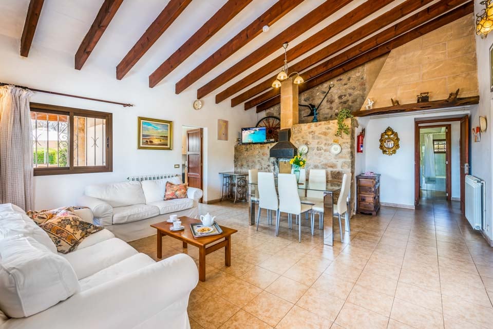 Sisällä kaikki majoitustilat sijaitsevat pohjakerroksessa. Sisäänkäynti vie sinut suoraan avoimeen olohuoneeseen ja ruokailutilaan. Tämä alue on täynnä luonnetta alkuperäisestä kattopalkeista kiviseen sisäseinään. Keittiössä on kaikki modernit mukavuudet, joita lomalla voi odottaa ja tarvita, kuten astianpesukone, pyykinpesukone, mikroaaltouuni, keraaminen liesi ja uuni sekä tietysti jääkaappipakastin. Yhteensä kolme makuuhuonetta: yksi parivuoteella varustettu makuuhuone ja kaksi erillisillä vuoteilla varustettua makuuhuonetta, joissa kaikissa on ajastettu ilmastointi. Makuuhuoneessa on kylpyhuone ja suihkuhuone, jotka ovat yhteiskäytössä kaikkien kolmen makuuhuoneen kesken.