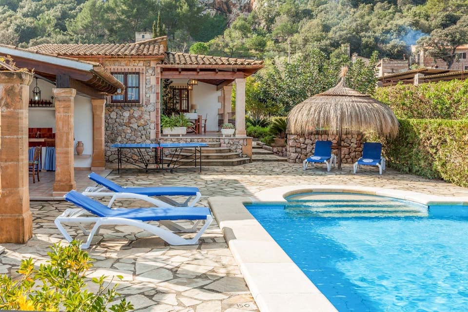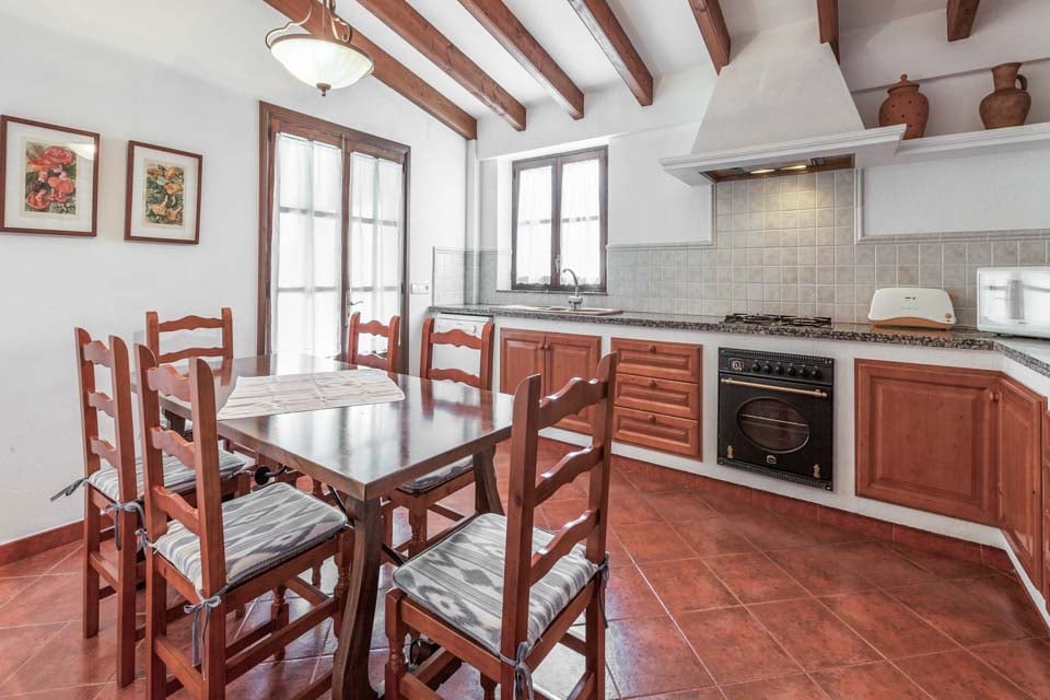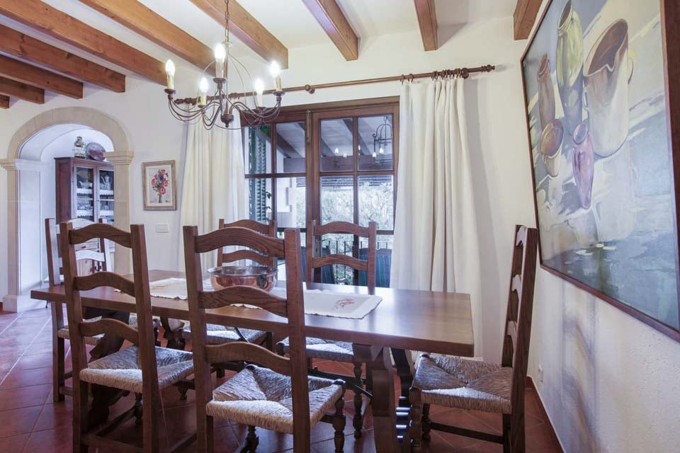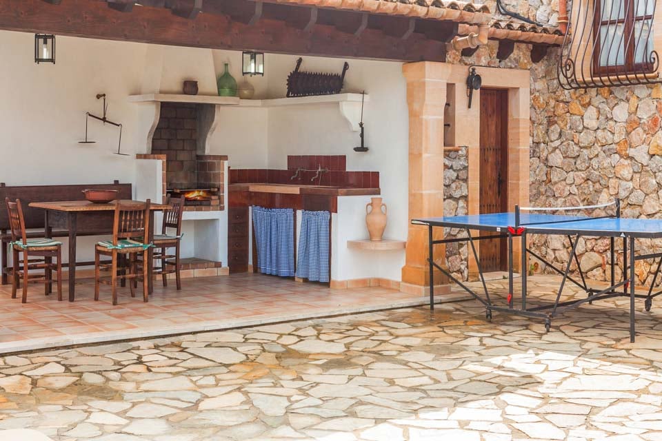 Vain 850 metrin päässä Pollensan vanhastakaupungista sijaitseva Villa Encis on ihanteellinen pakopaikka niille, jotka haluavat nauttia Mallorcan aurinkoisesta puolesta. Vuorenhuippujen ja vehreyden ympäröimä tämä kolmen makuuhuoneen huvila sopii erinomaisesti jopa kuudelle hengelle, jotka haluavat rentoutua ja nauttia upeista vuoristonäkymistä. Terassi oli suosikkiosuutemme, sillä sieltä löytyy lepotuoleja, pöytätennis ja katettu ulkoilma-alue. Tässä varjoisassa paikassa on maalaismainen ruokapöytä, tiilestä rakennettu grilli ja kaksi pesuallasta ulkoilma-aterioille. Nauti paikallisista lihoista, juustoista ja tuoreista leivistä auringonpaisteessa. Vaihtoehtoisesti yläterassilla on enemmän istumapaikkoja, mikä luo loistavan paikan aamukahville, kun suunnittelet päivääsi ja ihailet ympäristöäsi.