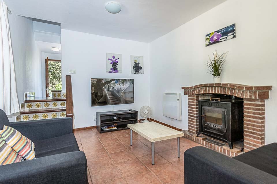 Sisällä viihtyisä olohuone ja ruokailutila, jossa on taulutelevisio, on ihanteellinen pakopaikka keskipäivän auringolta. Toisessa päässä on täysin varusteltu keittiö, jossa on jääkaappi-pakastin ja astianpesukone, kun taas toisesta päästä kukkakuvioiset laatat portaat johtavat toiseen kerrokseen. Kahden makuuhuoneen ansiosta tämä majoituspaikka on ensimmäisessä kerroksessa ihanteellinen pariskunnille ja yhdessä matkustaville ystäville. Toisessa makuuhuoneessa on parivuode ja toisessa kaksi erillistä vuodetta, ja molemmissa on käytössään kaksi erillistä kylpyhuonetta.
