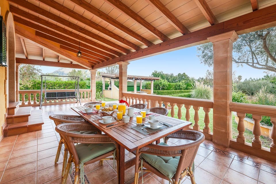 Upealla maaseudulla suosittujen Puerto Pollensan ja Pollensan lomakohteiden välissä sijaitseva Raquel on kauniisti hoidettu moderni huvila. Kätevästi yhteen tasoon levitetty huvila on tyylikkäästi sisustettu kauttaaltaan ja siinä on viileä ja mukava olohuone-ruokailutila, hyvin varusteltu keittiö ja kolme tilavaa makuuhuonetta, joissa kaikissa on ilmastointi. Raquelilla on myös etuna kattoterassi, jolle pääsee ulkoa ja joka tarjoaa henkeäsalpaavat näkymät rehevään maaseutumaisemaan; täydellinen paikka nauttia hiljaisesta ajasta uppoutuen kirjaan tai vain nauttien auringosta kauniin taustan äärellä. Ulkona tilavassa puutarhassa on runsaasti varjoisia paikkoja, kuten katettu grillialue, joka on loistava paikka nauttia rentouttavista aterioista omaa uima-allasta ihaillen. Käytettävissä on myös suuri nurmialue, joka sopii erinomaisesti perhepeleihin! Niille, jotka haluavat tutustua tähän Pohjois-Mallorcan upeaan osaan, lähellä sijaitseva Puerto Pollensan vanhakaupunki on ehdottomasti vierailun arvoinen putiikkien, ravintoloiden ja upeiden historiallisten nähtävyyksien vuoksi. Puerto Pollensan pitkä hiekkaranta ja kristallinkirkas vesi, joita reunustavat ravintolat ja baarit, ovat pakollisia vierailusi aikana! Villa Raquel on erittäin mukava ja kodikas majoituspaikka, jossa on kaikki odotettavissa olevat mukavuudet, mikä tekee siitä suositun valinnan nuorelle perheelle, joka etsii unohtumatonta lomaa.