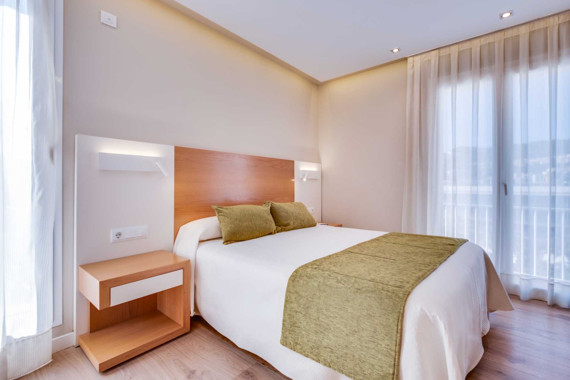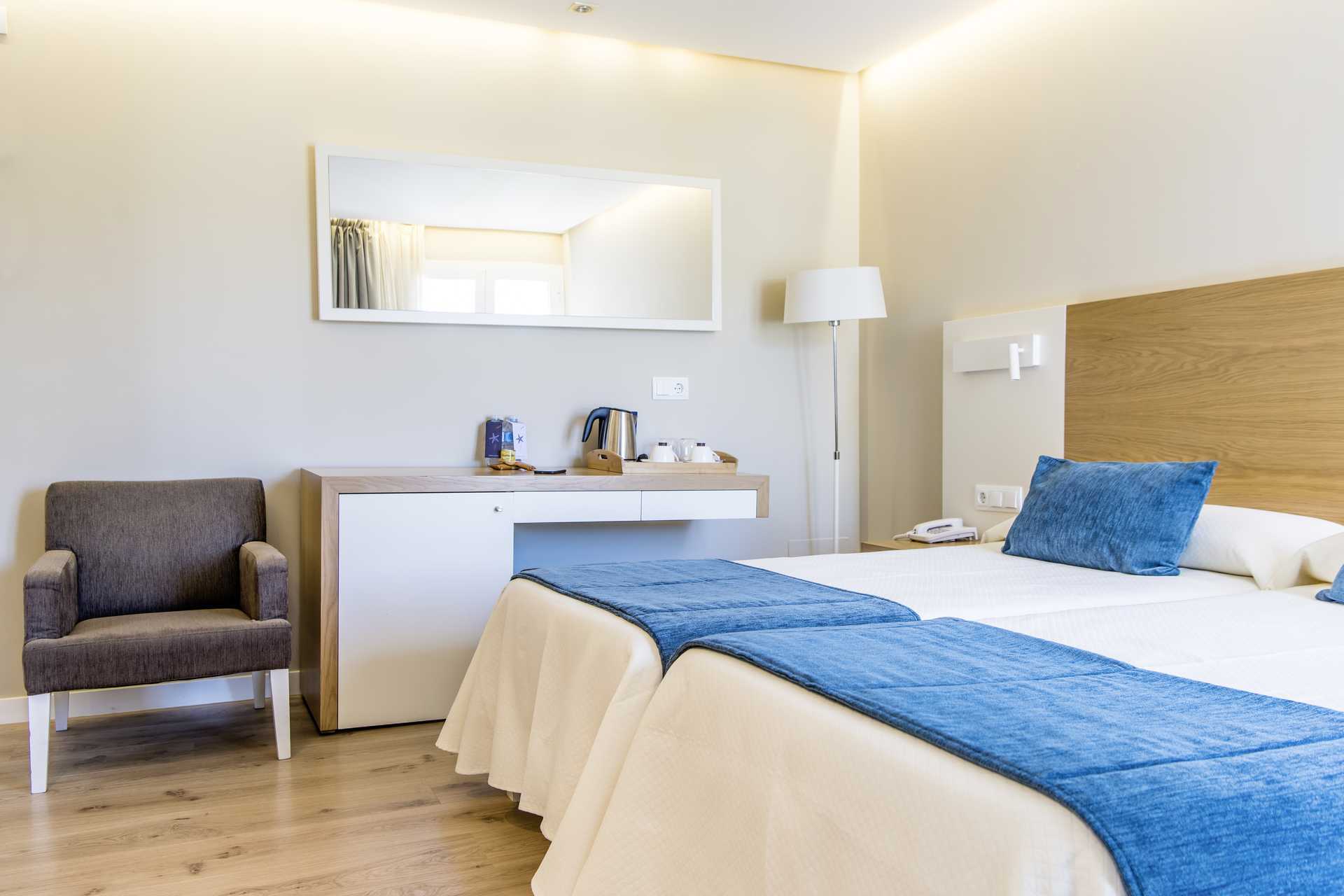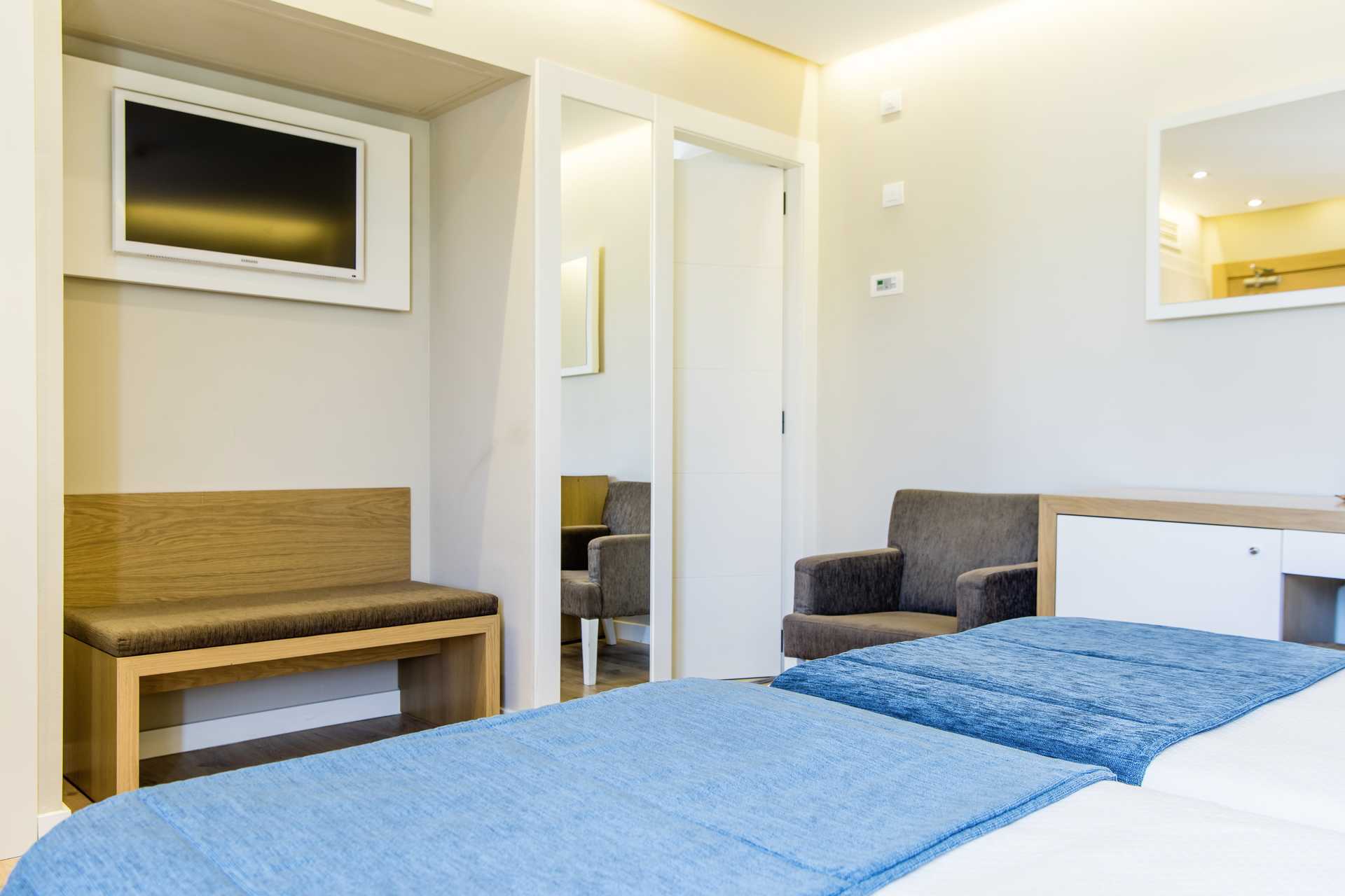 Kahden hengen huoneita, joissa on parveke. Parivuode tai kaksi yhden hengen vuodetta. Maksuton wifi, ilmastointi ja tallelokero. Jääkaappi sekä kahvin ja teen keittomahdollisuus. Tv kansainvälisillä kanavilla. Hiustenkuivain. Amme ja wc. Siivous 7 krt/viikko.