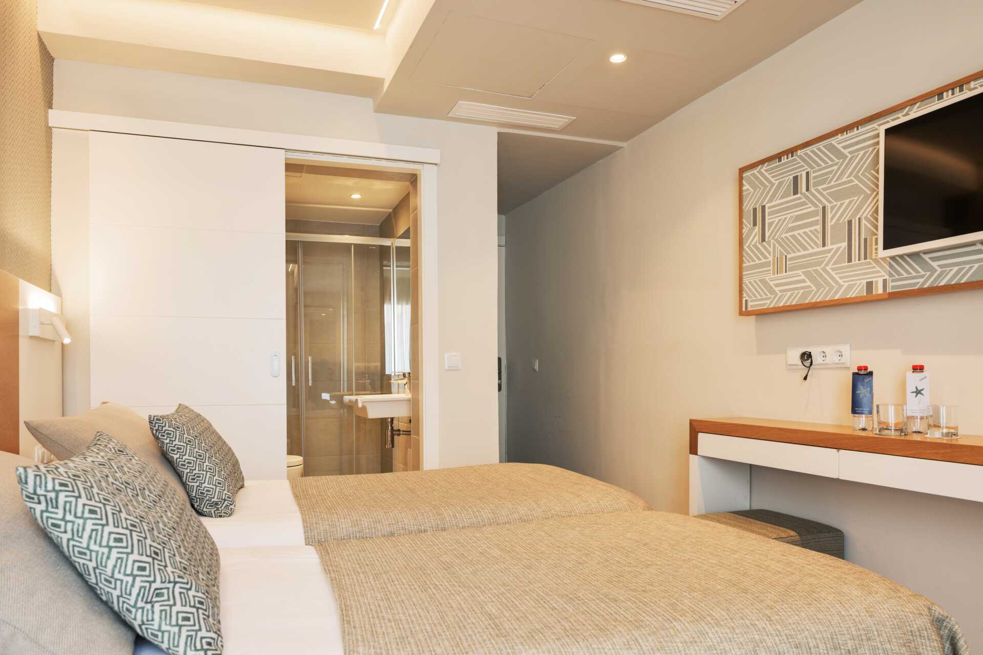 Standard-huone, ei patiota. Rajoitettu merinäköala. Parivuode tai kaksi yhden hengen vuodetta. Maksuton wifi, ilmastointi ja tallelokero. Jääkaappi. Vedenkeitin, kahvia ja teetä. Tv kansainvälisillä kanavilla. Hiustenkuivain. Suihku ja wc. Siivous 7 krt/viikko.