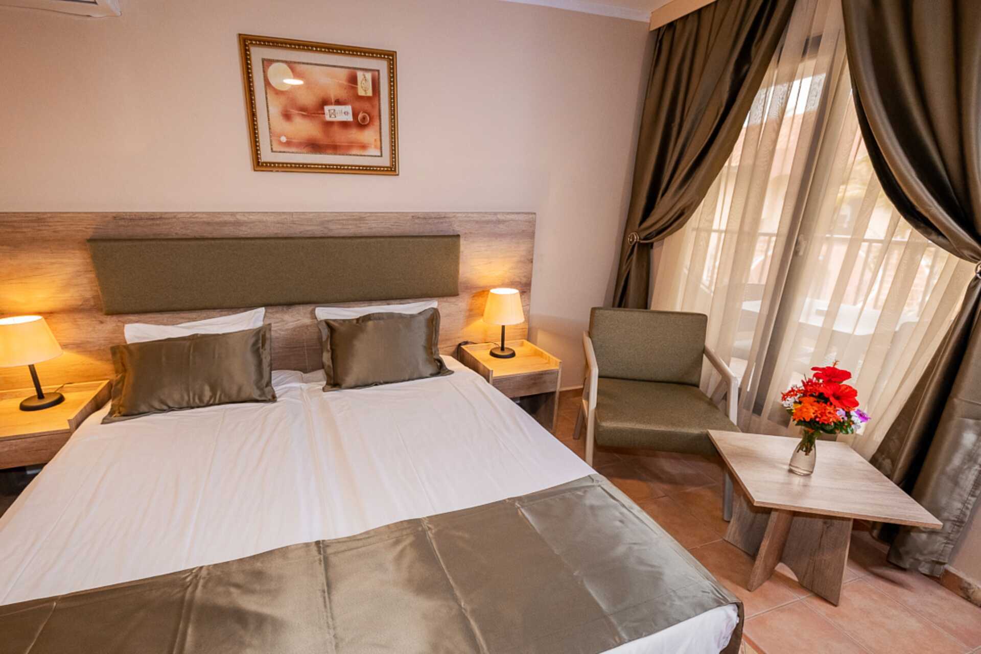 Standard-huone parvekkeella tai terassilla. Joissakin huoneissa on yhteinen ulkotila parvikäytävällä. Kaksi yhden hengen sänkyä. Maksuton wifi, ilmastointi ja tallelokero. Jääkaappi. Tv kansainvälisillä kanavilla. Hiustenkuivain. Kylpyhuoneessa suihku ja wc. Siivous 7 krt/viikko. Hyttysverkot ovat saatavilla kaikkiin ikkunoihin.
