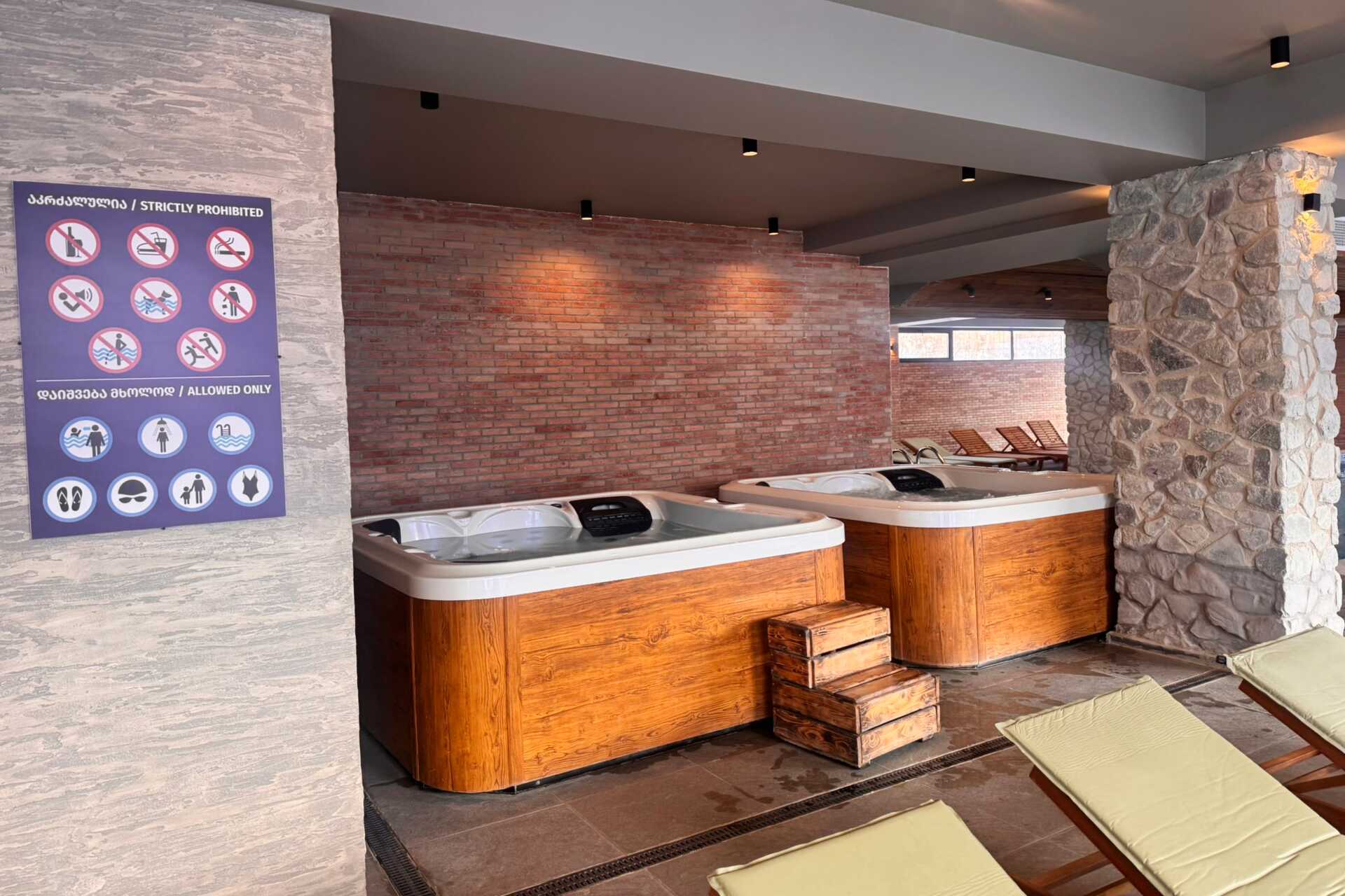 Трансфер на гору заявляют, что с 10 до 11 утра, с 15-ти минутным интервалом. Пришел на ресепшн в 9:50, чтобы не опоздать на первую отправку. Сижу в 10:30 ничего не происходит — пишу отзыв. Подъемники с 10 и надежда покататься на свежих трассах тает. Завтраки отличные. Хоть относительно однообразные и стандартные для шведского стола, но понравились. На завтрак 10 дней ходил с радостью. Ужин по меню ужасный. Такого пересушенного свиного шашлыка я еще в жизни не ел. С голодухи, я макал его в масло из-под картошки. Картошка была недожаренная. Никогда не думал, что в Грузии можно так поужинать. Больше сюда на ужин, не ходил. Сауна в нашем корпусе была только по документам. На стене висел файлик с бумажкой «Сауна». А сама сауна была на стадии стройки-ремонта. А сауна в другом корпусе платная. Минималка для гостей отеля - 30 лари (1350₽ на янв 2025). Отошение персонала хорошее. Были конечно те, кто строго смотрели, но в основном все добродушные и приветливые. Остались положительные впечатления.