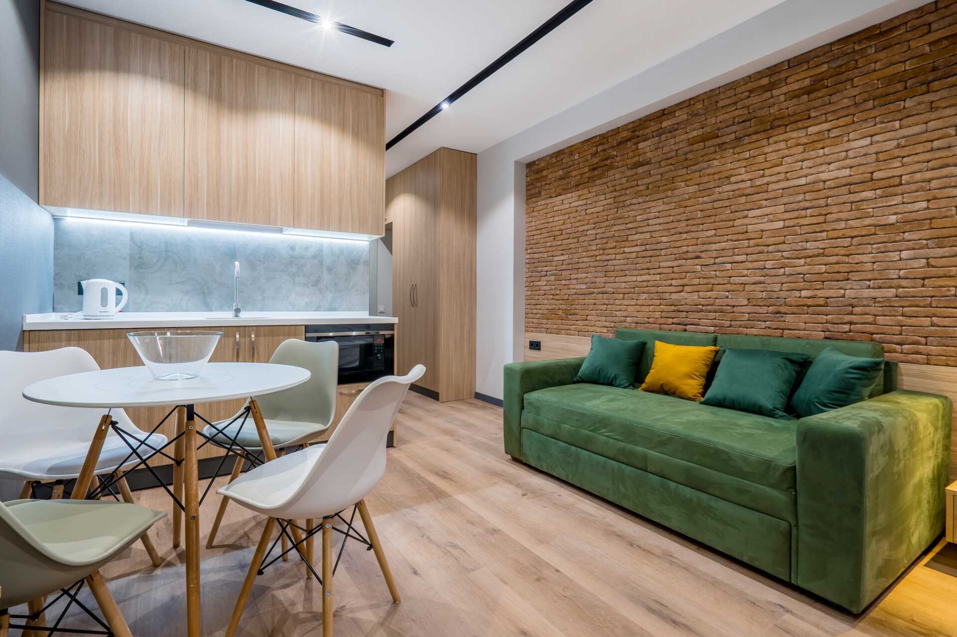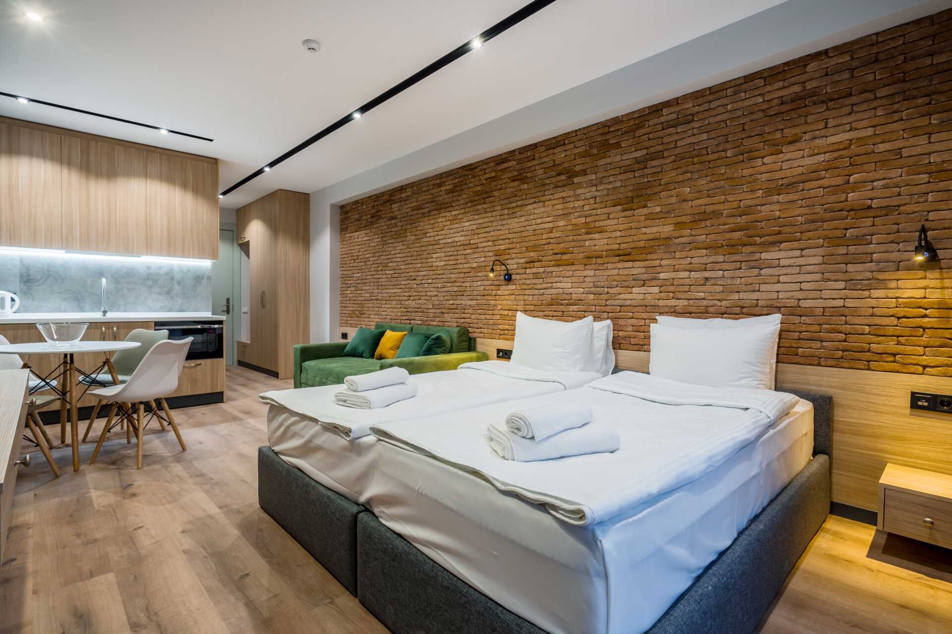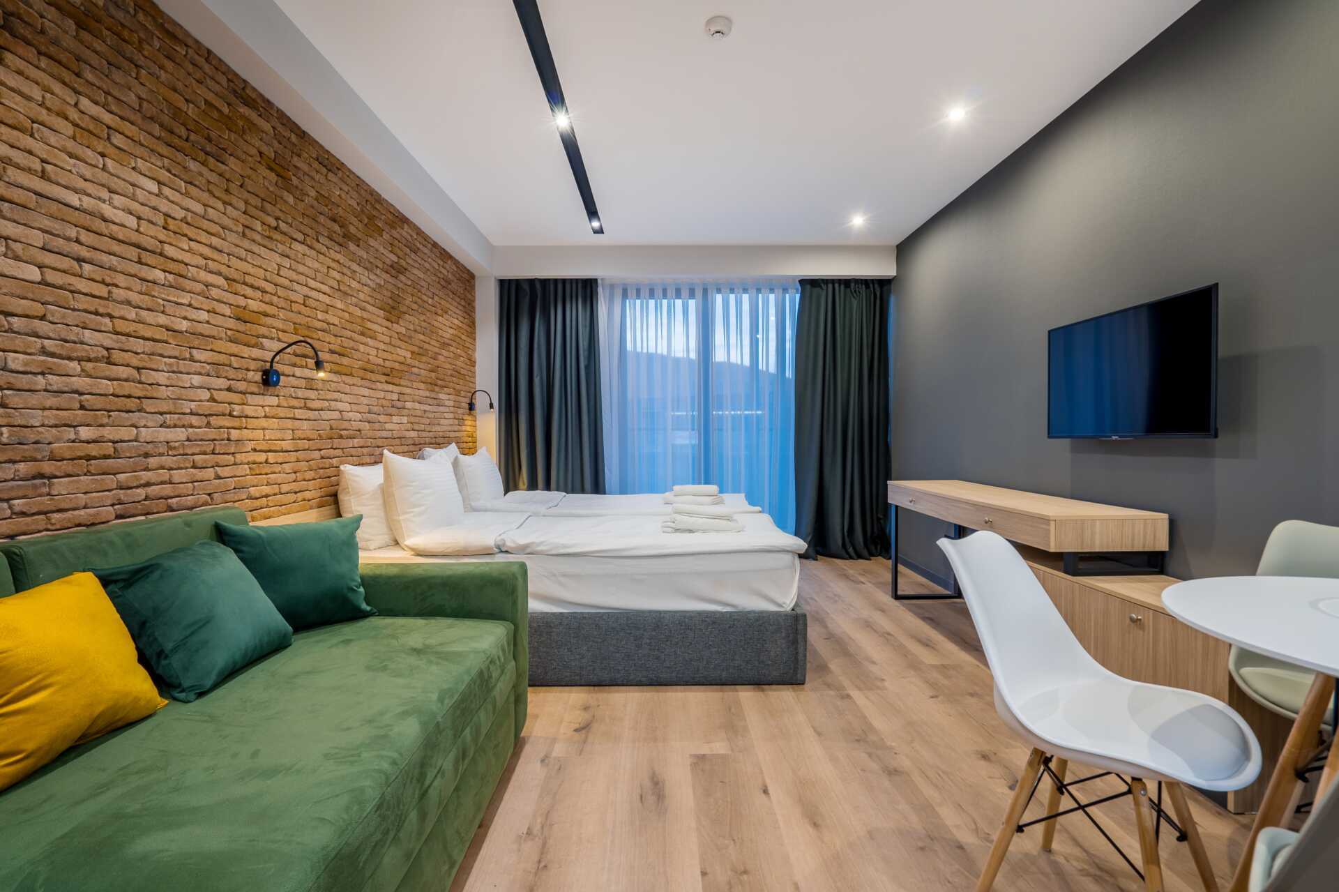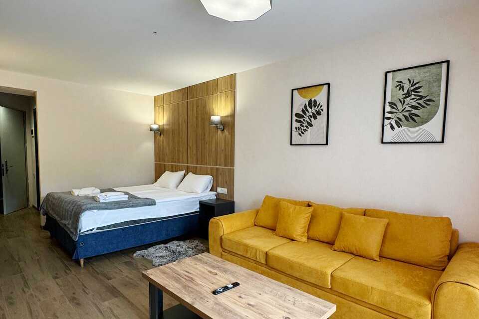 Parvekkeellinen yksiö. Makuuhuoneessa minikeittiö. Parivuode. Lisävuodemahdollisuus vuodesohvalla. Minikeittiö, jossa keittolevyt, jääkaappi ja pakastin, mikro, vedenkeitin, voileipägrilli ja yksinkertainen keittiövarustus ja pesukone. Maksuton wifi ja ilmastointi lämmitykseen. Tv kansainvälisillä kanavilla. Hiustenkuivain. Kylpyhuoneessa suihku ja wc. Siivous 2 krt/viikko.