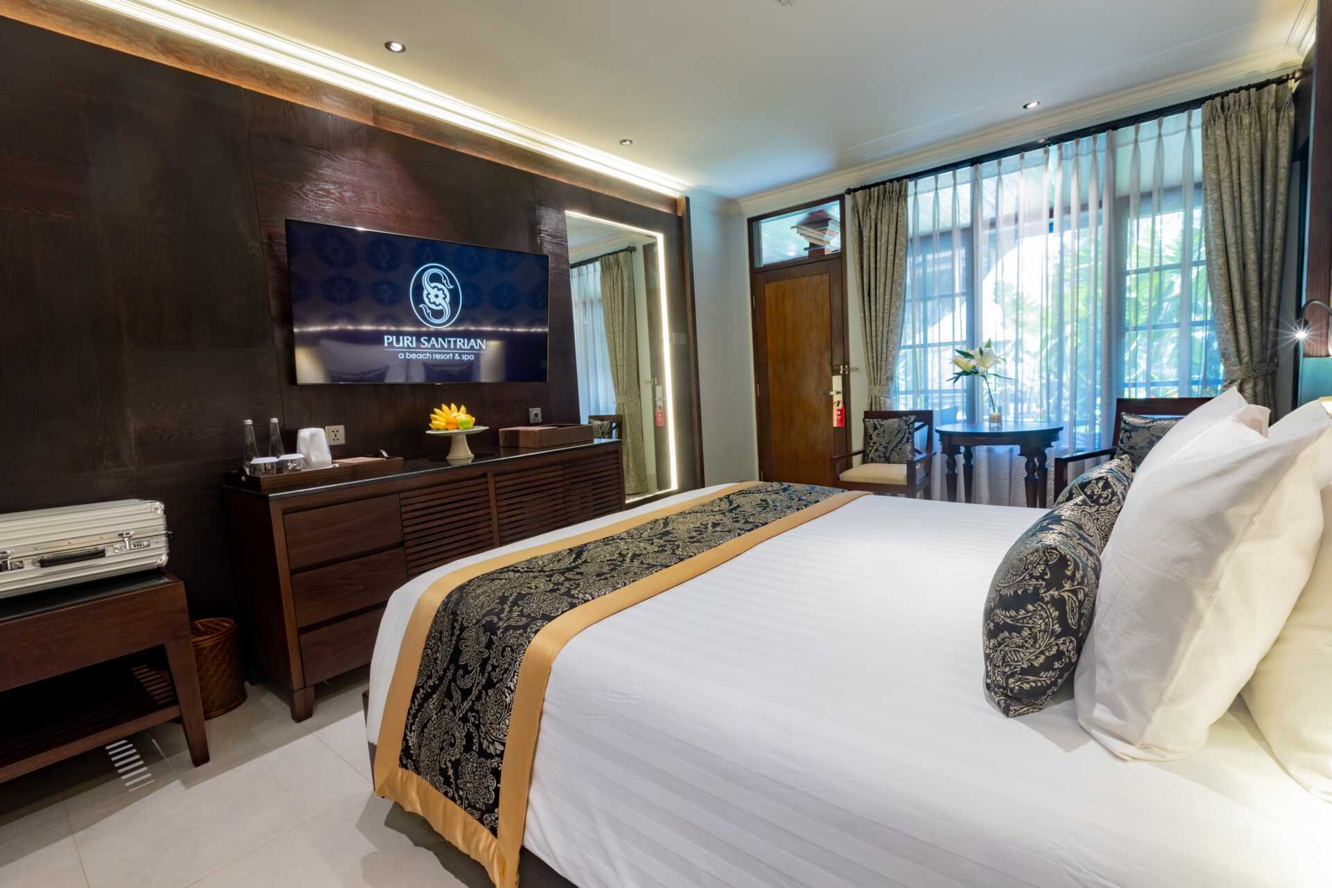 Deluxe-huone parvekkeella tai terassilla. Huoneet sijaitsevat omassa erillisessä osassa hotellia, Santrian Club Wing -siivessä, jossa on allasalue, jossa on yhteinen uima-allas, poreallas, aurinkotuoleja ja -varjoja sekä oleskelutila. Aamupalaa ja iltapäiväteetä tarjoillaan päivittäin rannalla sijaitsevassa The Beach Front -ravintolassa. Parivuode tai kaksi yhden hengen sänkyä. Maksuton wifi, ilmastointi ja tallelokero. Minibaari. Vedenkeitin, kahvia ja teetä. Tv kansainvälisillä kanavilla. Kylpytakit ja tossut. Hiustenkuivain. Kylpyhuoneessa kylpyamme tai suihku ja wc. Siivous 7 krt/viikko.