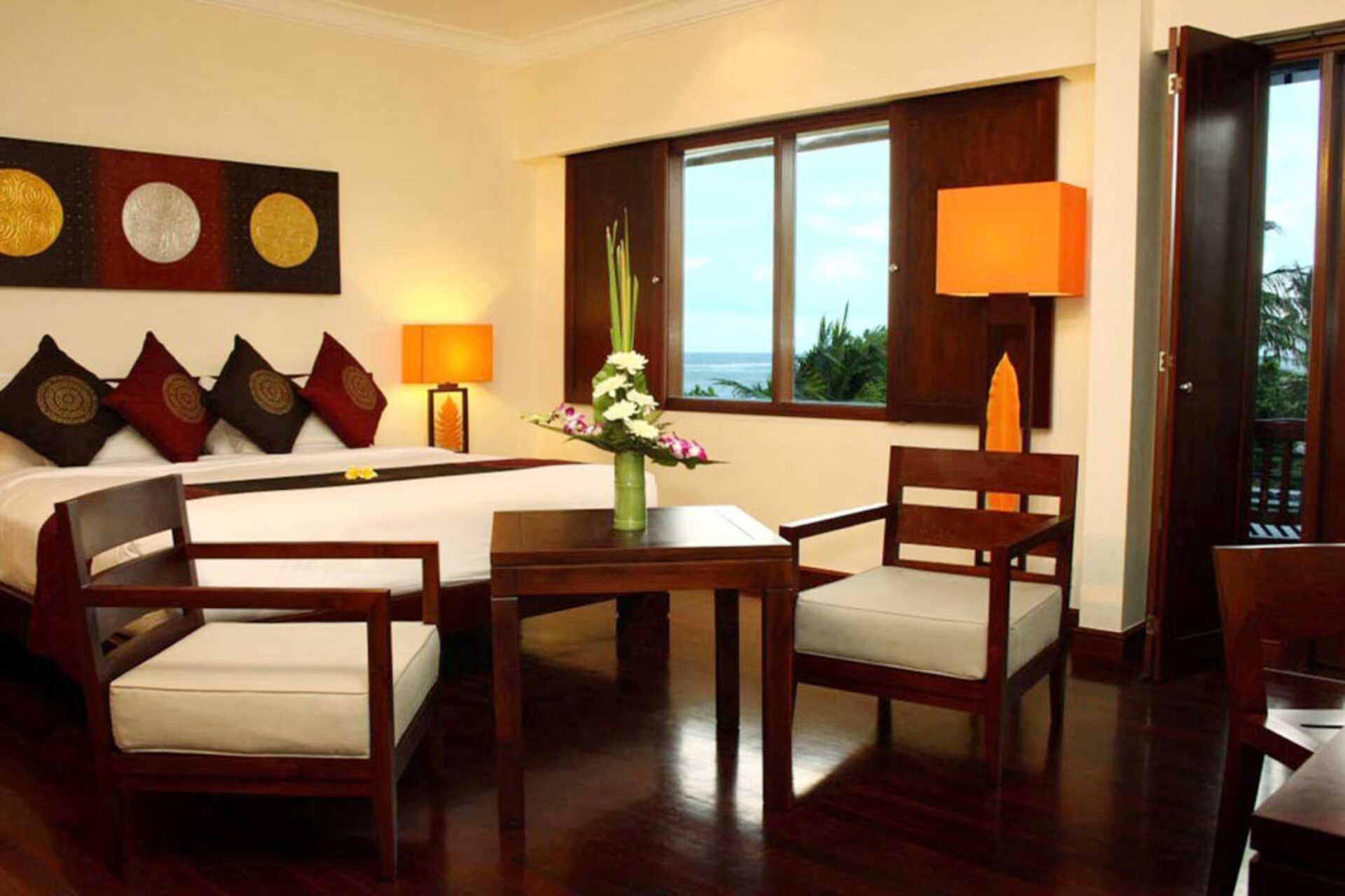 Deluxe-huone - Sea Front, jossa parveke tai terassi ja merinäköala. Parivuode tai kaksi yhden hengen sänkyä. Lisävuodemahdollisuus kokoontaitettavasta vuoteesta. Neljäs henkilö nukkuu olemassa olevissa vuoteissa. Maksuton wifi, ilmastointi ja tallelokero. Jääkaappi. Vedenkeitin, kahvia ja teetä. Tv kansainvälisillä kanavilla. Hiustenkuivain. Kylpyhuoneessa kylpyamme, erillinen suihku ja wc. Siivous 7 krt/viikko. Alle 2-vuotiaat lapset lasketaan lisävuoteella majoittuviksi henkilöiksi.