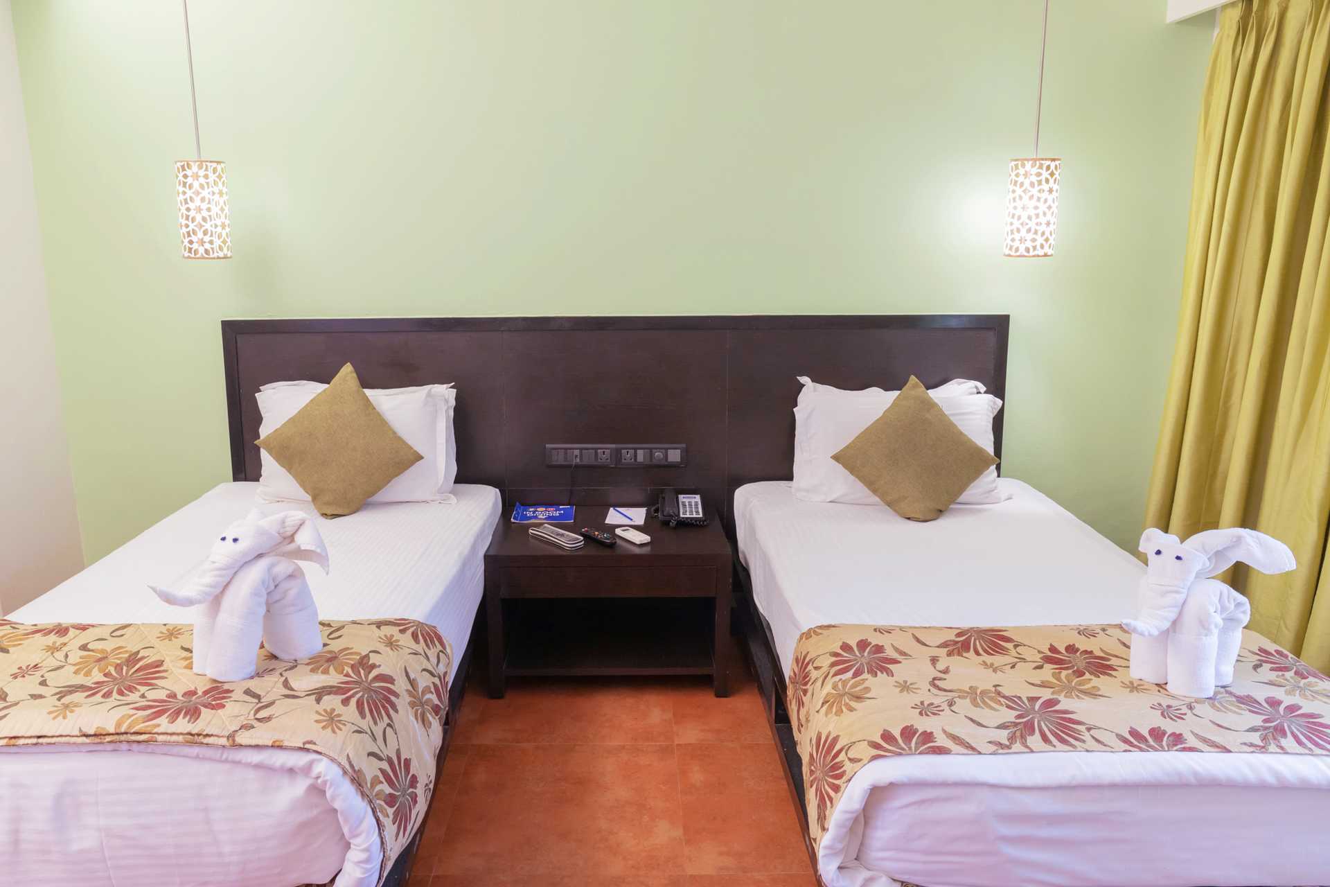 Superior-huone parvekkeella. Yksi parivuode tai kaksi erillistä sänkyä. Mahdollisuus saada lisävuode kolmannelle henkilölle. Kun lisävuode on käytössä, huone saattaa tuntua hieman ahtaalta. Wifi, ilmastointi ja säilytys sisältyvät hintaan. Minibaari. Vedenkeitin, kahvia ja teetä. Tv kansainvälisillä kanavilla. Hiustenkuivaaja. Kylpyhuone, jossa suihku ja wc. Siivous 7 krt/viikko. Alle kaksivuotiaat lapset lasketaan lisävuoteella majoittuviksi henkilöiksi.