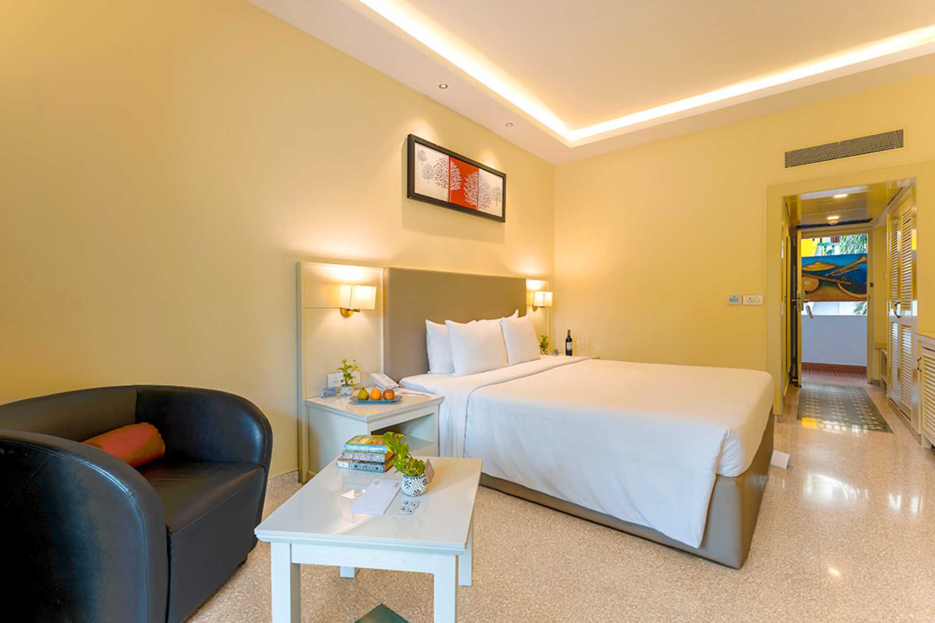 Kahden hengen huone parvekkeella tai terassilla. Parivuode tai kaksi yhden hengen sänkyä. Mahdollisuus lisävuoteeseen kokoontaitettavasta vuoteesta. Maksuton wifi, ilmastointi ja tallelokero. Jääkaappi. Vedenkeitin, kahvia ja teetä. Tv kansainvälisillä kanavilla. Silitysrauta ja -lauta. Hiustenkuivain. Kylpyhuoneessa suihku ja wc. Siivous 7 krt/viikko.