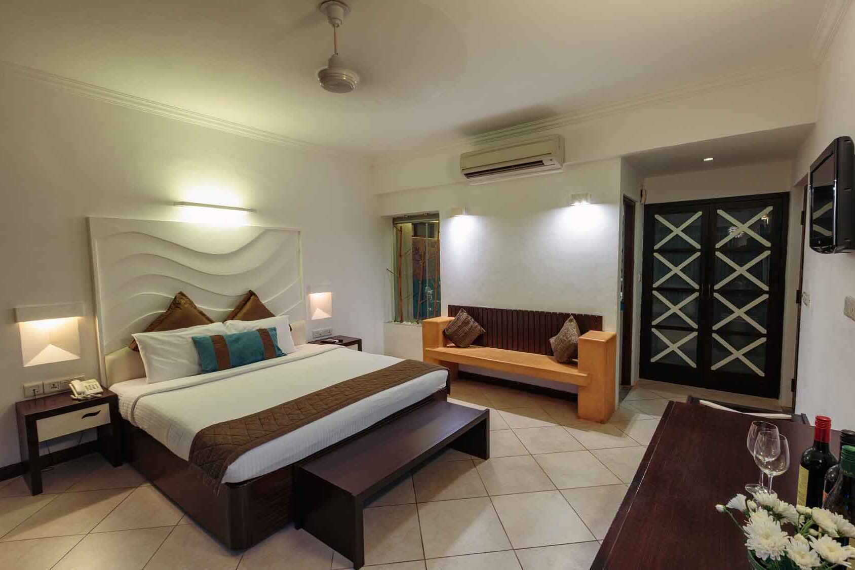 Kahden hengen huone parvekkeella, osassa allasnäköala. Parivuode tai kaksi yhden hengen sänkyä. Mahdollisuus lisävuoteeseen kokoontaitettavasta vuoteesta. Maksuton wifi, ilmastointi ja tallelokero. Jääkaappi. Hintaan sisältyy yksi pullo vettä päivässä, ja se täytetään päivittäin. Vedenkeitin, kahvia ja teetä. Tv kansainvälisillä kanavilla. Hiustenkuivain. Kylpyhuoneessa suihku ja wc. Siivous 7 krt/viikko.