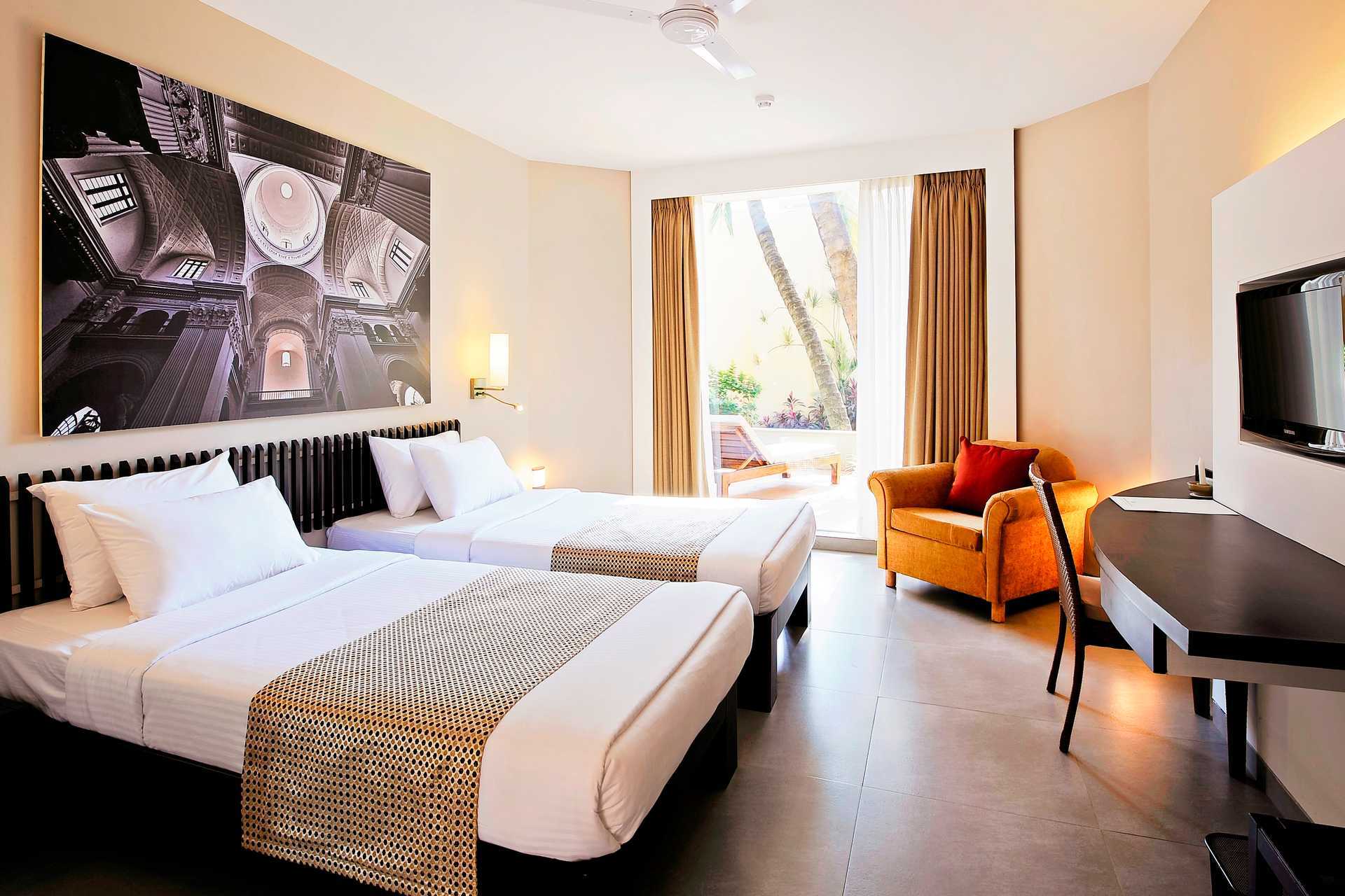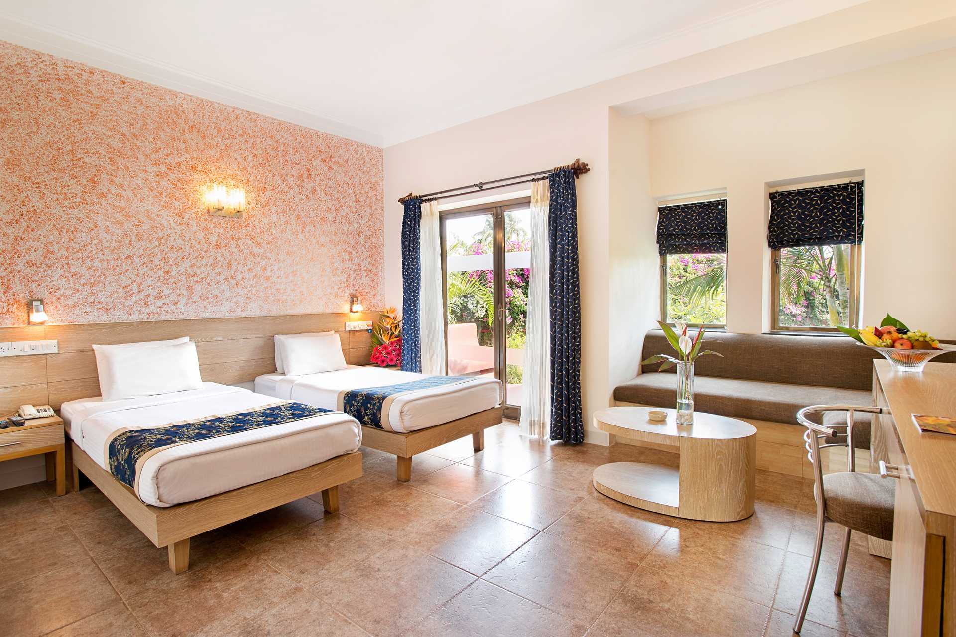 Deluxe-huone, jossa on jaettu ulkotila. Parivuode tai kaksi erillistä sänkyä. Lisävuodemahdollisuus yhden hengen vuoteeseen tai olemassa oleviin vuoteisiin. Sohvaryhmä. Maksuton wifi, ilmastointi ja tallelokero. Minibaarissa on vesipullo - muut juomat ja välipalat lisämaksulla. Vedenkeitin. Tv kansainvälisillä kanavilla. Hiustenkuivain. Kylpyhuoneessa suihku ja wc. Siivous 7 krt/viikko. Alle 2-vuotiaat lasketaan lisävuoteessa majoittuviksi henkilöiksi.