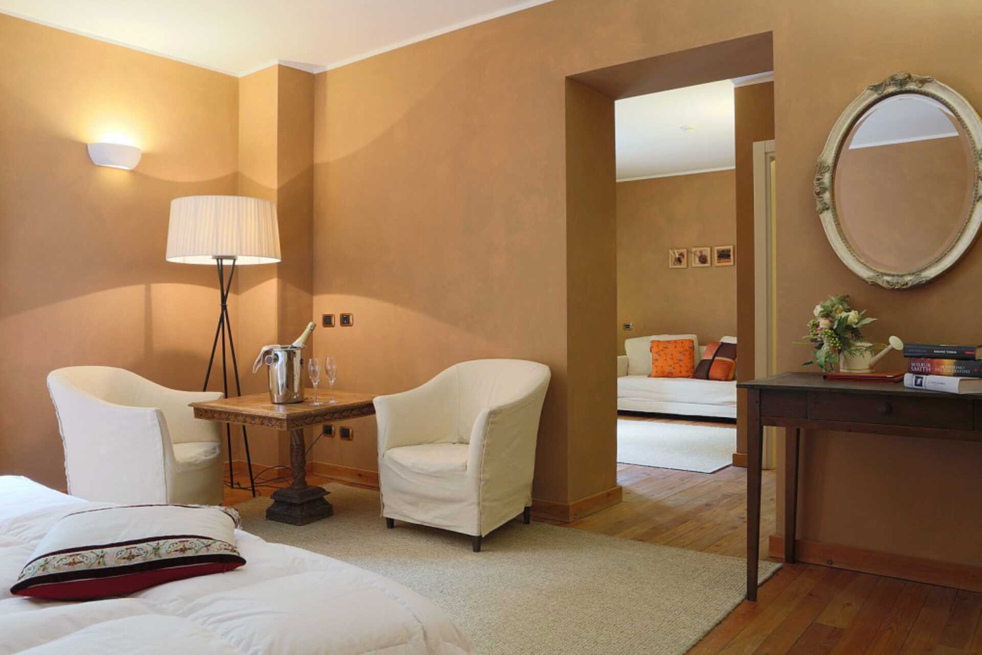 Junior-sviitti, ilman ulkotilaa. Junior-sviitti koostuu kahdesta pienemmästä kahden hengen huoneesta, joita yhdistää ovi. Parivuode tai kaksi erillistä vuodetta kummassakin makuuhuoneessa. Maksuton wifi. Jääkaappi. Tv kansainvälisillä kanavilla. Hiustenkuivain. Suihku ja wc. Siivous 4 krt/viikko.