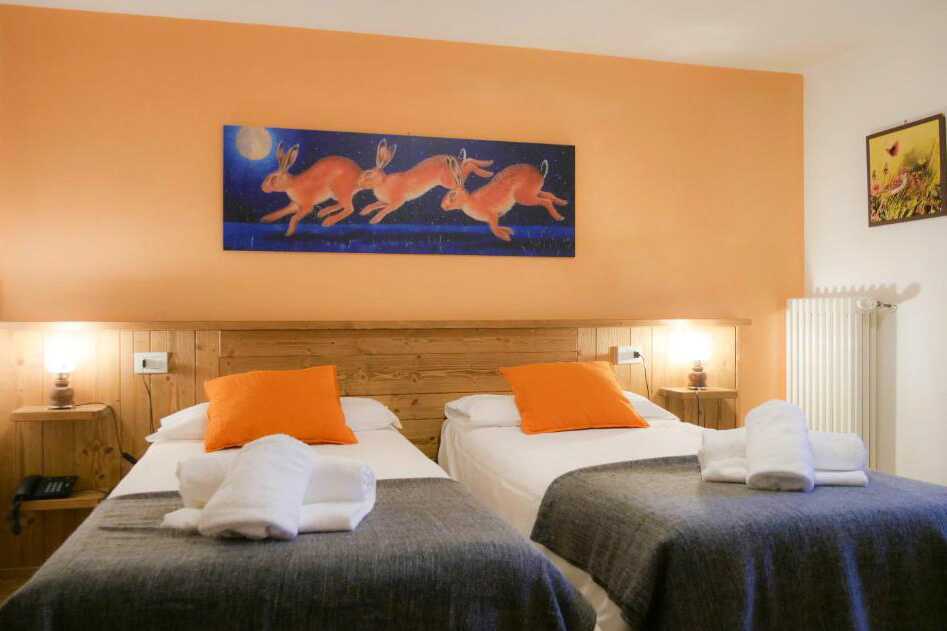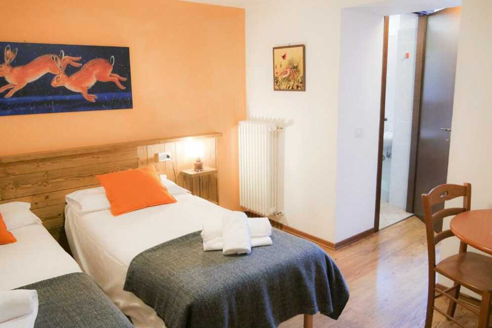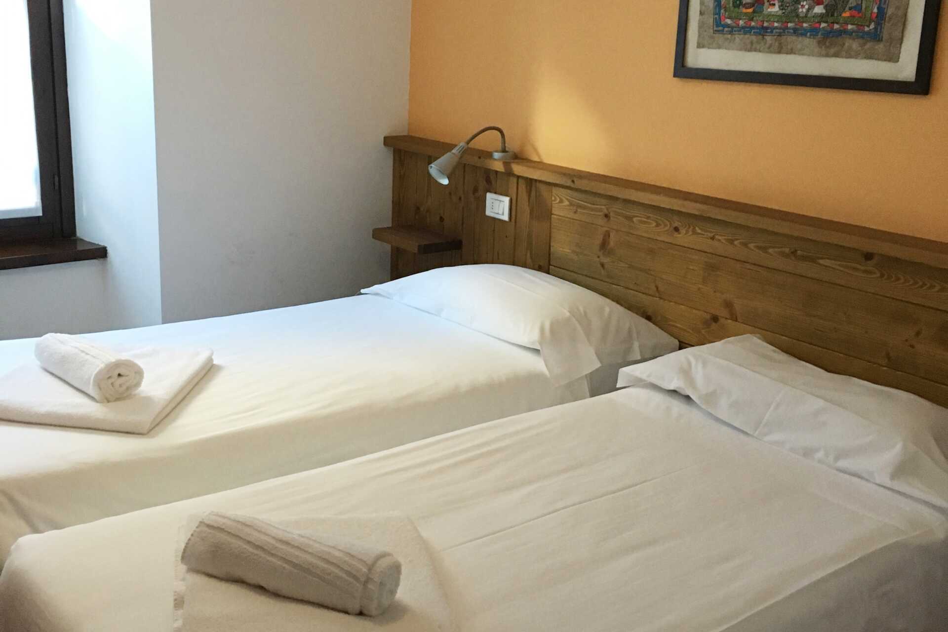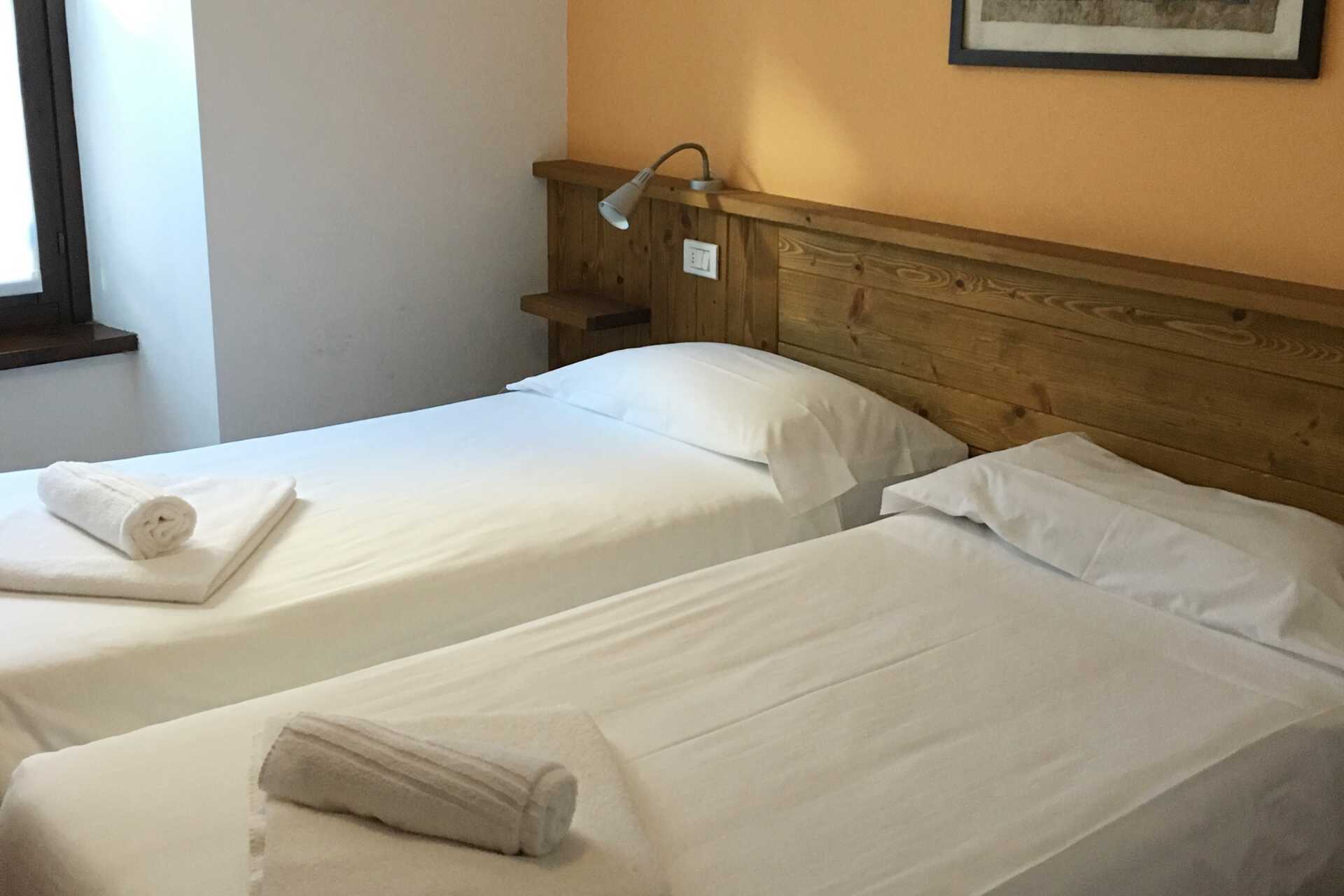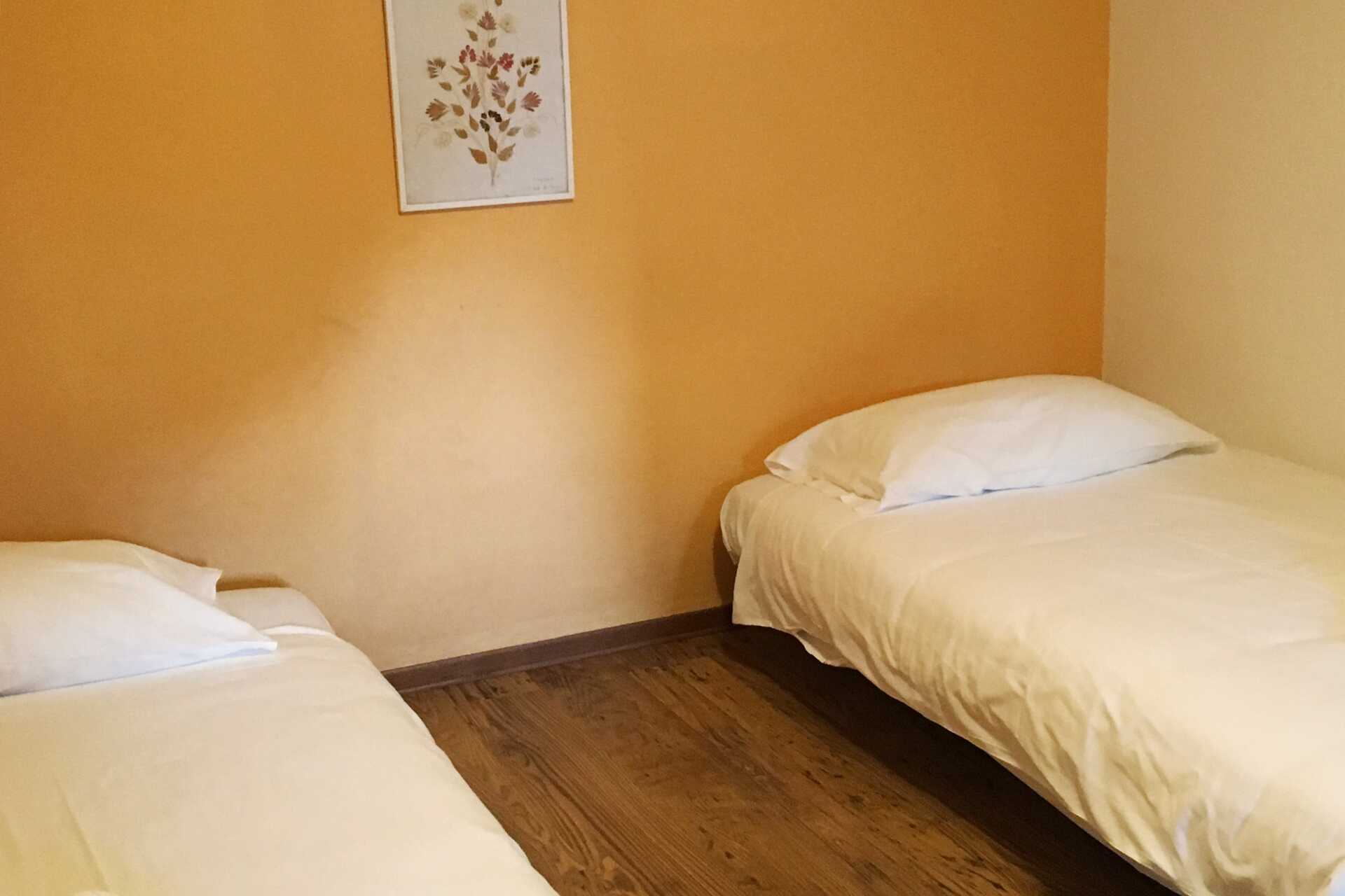 Kahden hengen huone ilman ulkotilaa. Parivuode tai kaksi yhden hengen sänkyä. Mahdollisuus lisävuoteisiin. Maksuton wifi. Kylpyhuoneessa suihku ja wc.