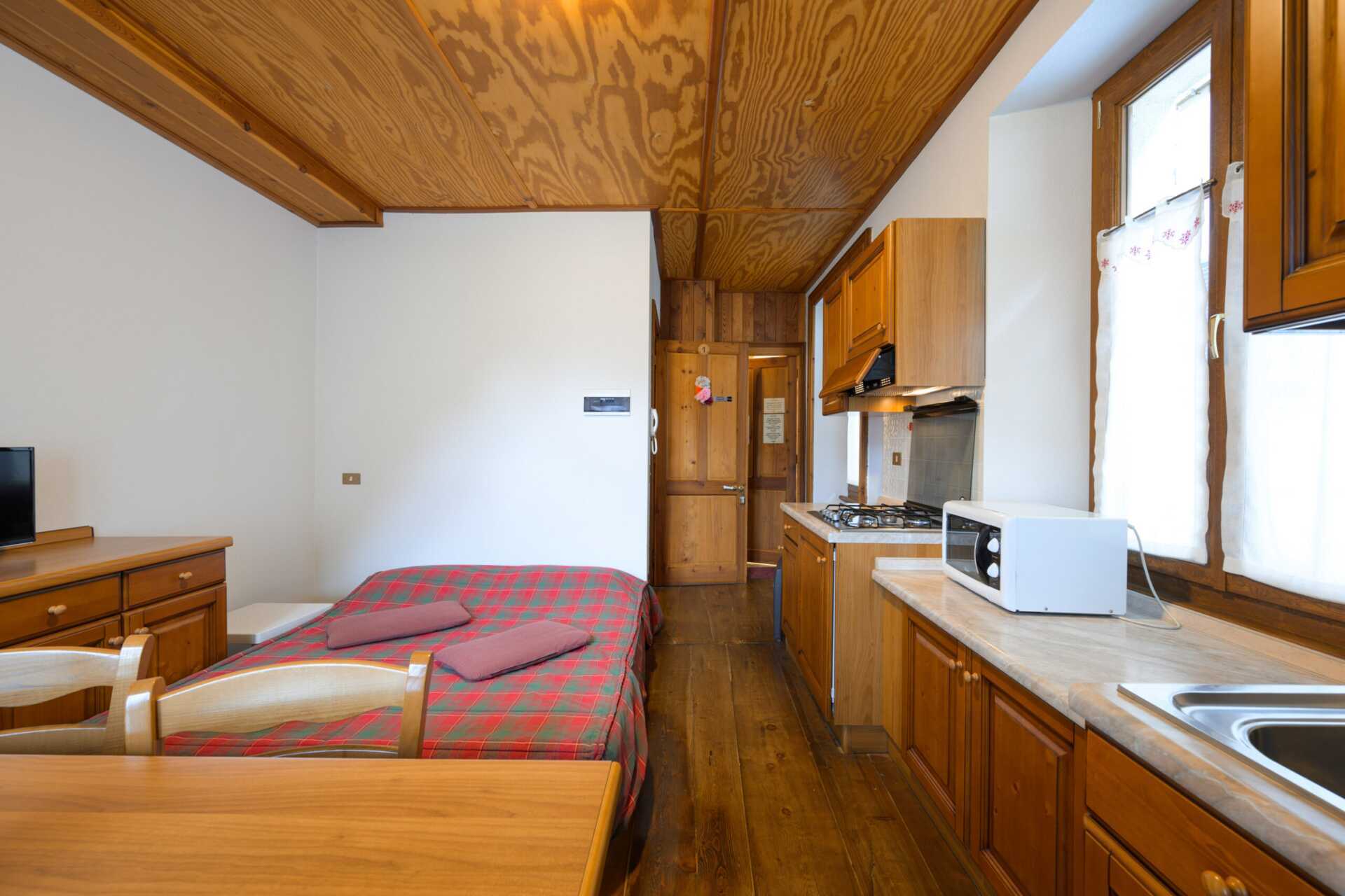 Yksiö ilman ulkotilaa. Vuodesohva, jossa on tilaa kahdelle hengelle, ja yksi sänky. Minikeittiössä keittolevyt, jääkaappi, vedenkeitin, mikro ja yksinkertainen keittiövarustus. Maksuton wifi. Tv kansainvälisillä kanavilla. Hiustenkuivain. Kylpyhuoneessa suihku ja wc. Siivotaan saapuessa, mutta ei siivousta/liinavaatteiden tai pyyhkeiden vaihtoa oleskelun aikana.