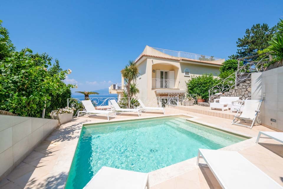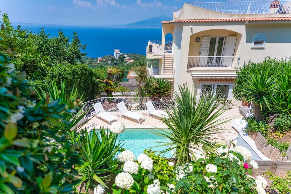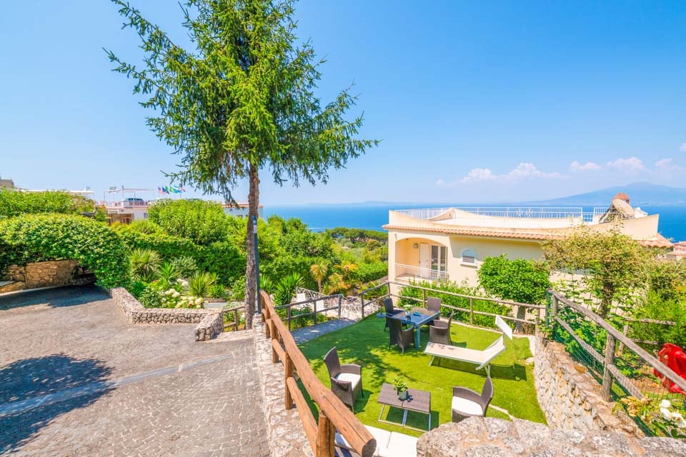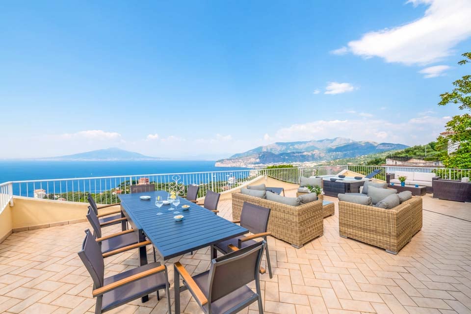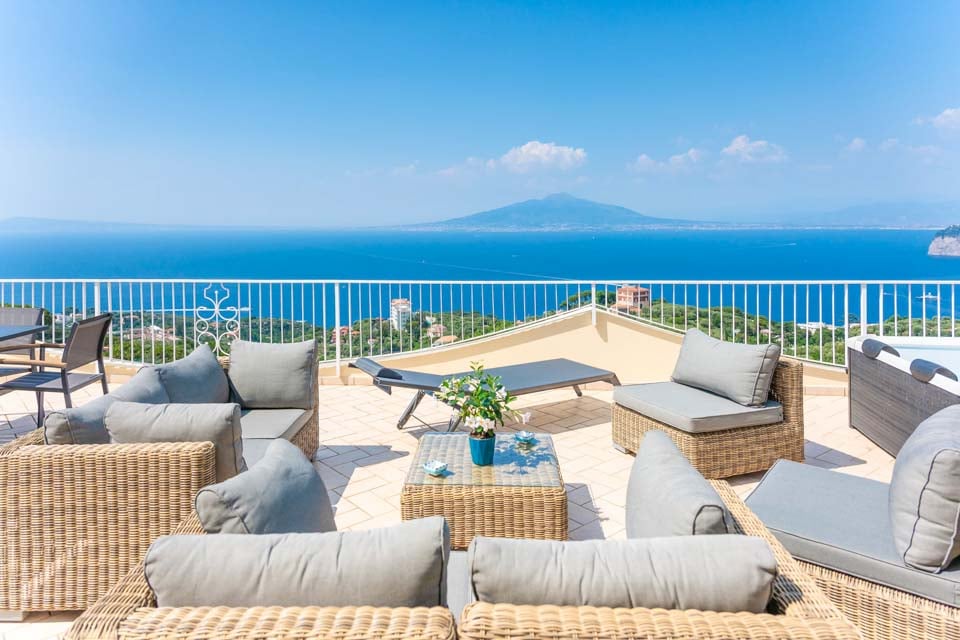 Tervetuloa Vesuvius Gazeen, upeaan rinteellä sijaitsevaan lepopaikkaan, jossa jokainen vilkaisu vetää sinut puoleensa kimaltelevaa merta ja lahden toisella puolella kohoavan Vesuvius-tulivuoren ikonista siluettia. Tämä tilava huvila on suunniteltu helppoa asumista varten, ja siinä on neljä kutsuvaa makuuhuonetta ja neljä kylpyhuonetta, joten jokaisella on tilaa rentoutua ja virkistäytyä.