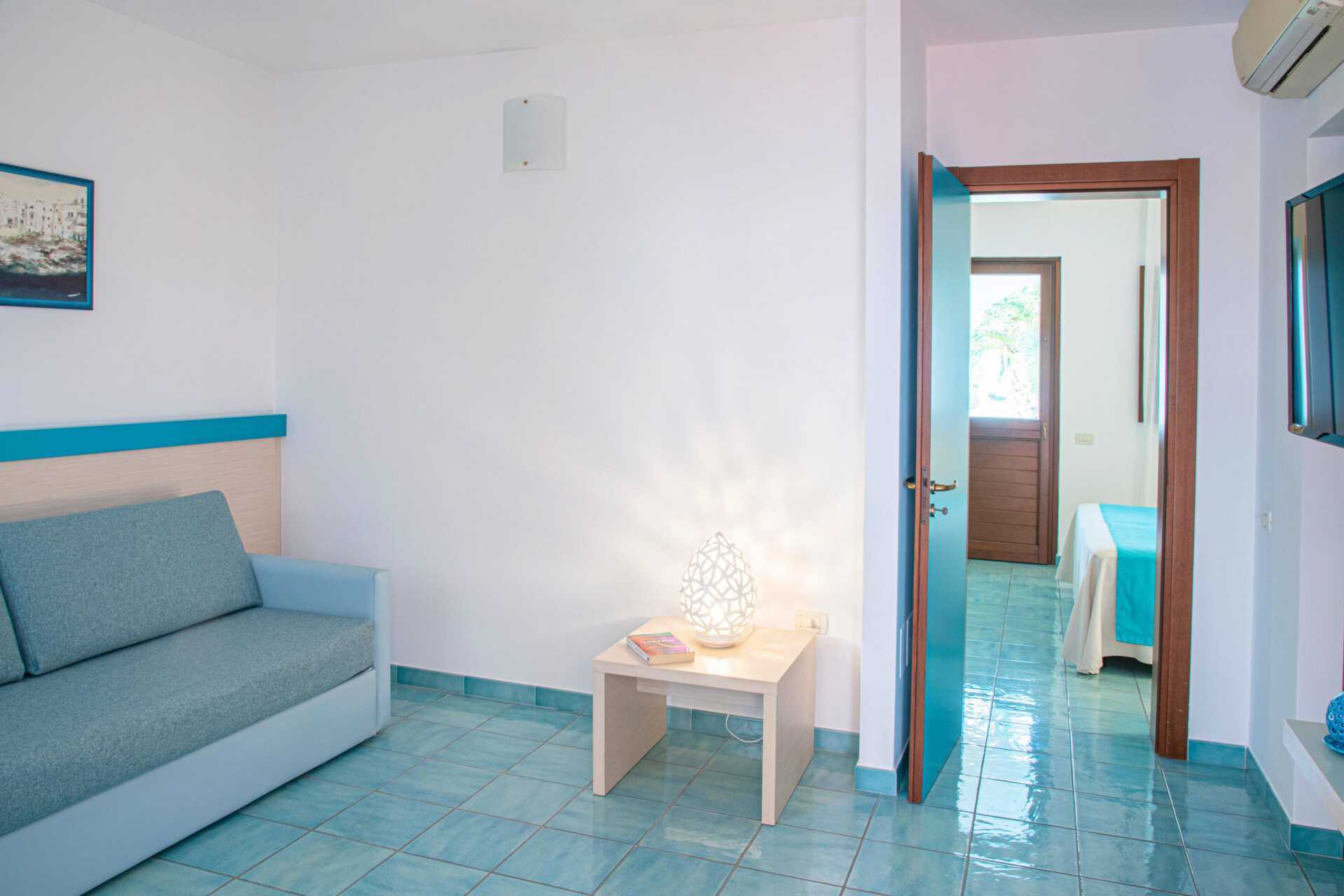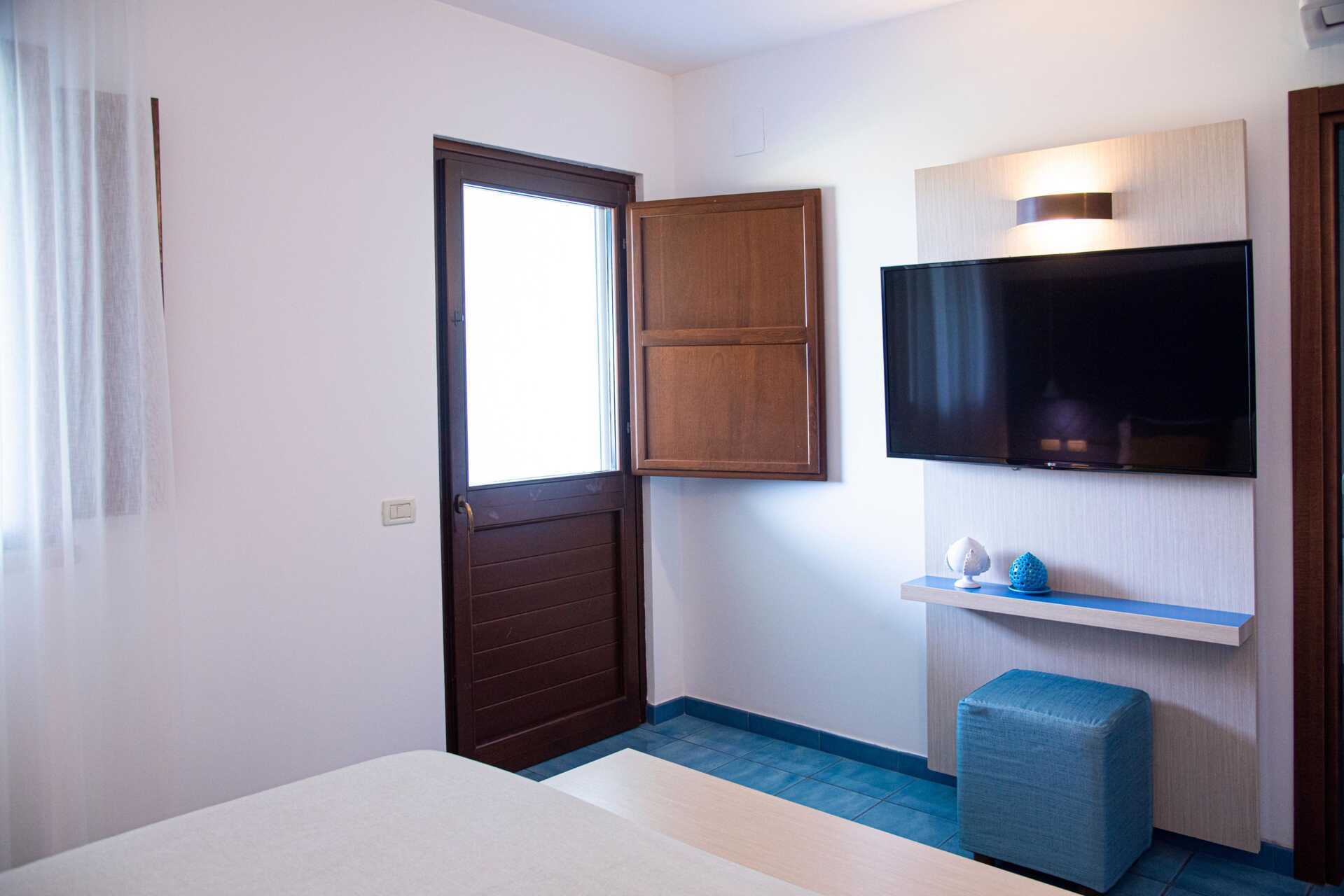 Juniorsviitti parvekkeella tai terassilla. Parivuode, mahdollisuus saada lisävuoteita vuodesohvalla. Maksuton wifi, tallelokero ja ilmastointi. Vedenkeitin, kahvia ja teetä. Minibaari. Tv. Hiustenkuivain. Kylpyhuoneessa suihku ja wc. Siivous 5 krt/viikko.