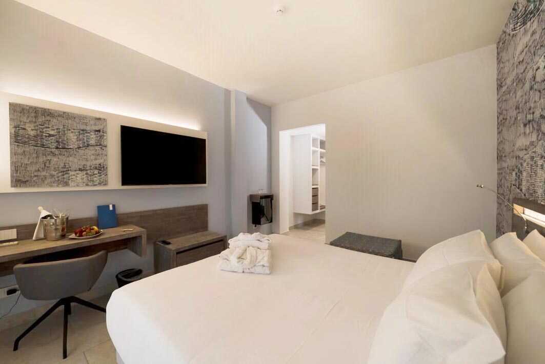 Superior-huone parvekkeella tai terassilla. Huoneet on remontoitu vuonna 2023 Parivuode tai kaksi yhden hengen sänkyä. Lisävuodemahdollisuus vuodesohvaan tai yhden hengen vuoteeseen. Maksuton wifi, ilmastointi ja tallelokero. Jääkaappi. Tv kansainvälisillä kanavilla. Hiustenkuivain. Kylpyhuoneessa kylpyamme tai suihku ja wc. Siivous 5 krt/viikko.