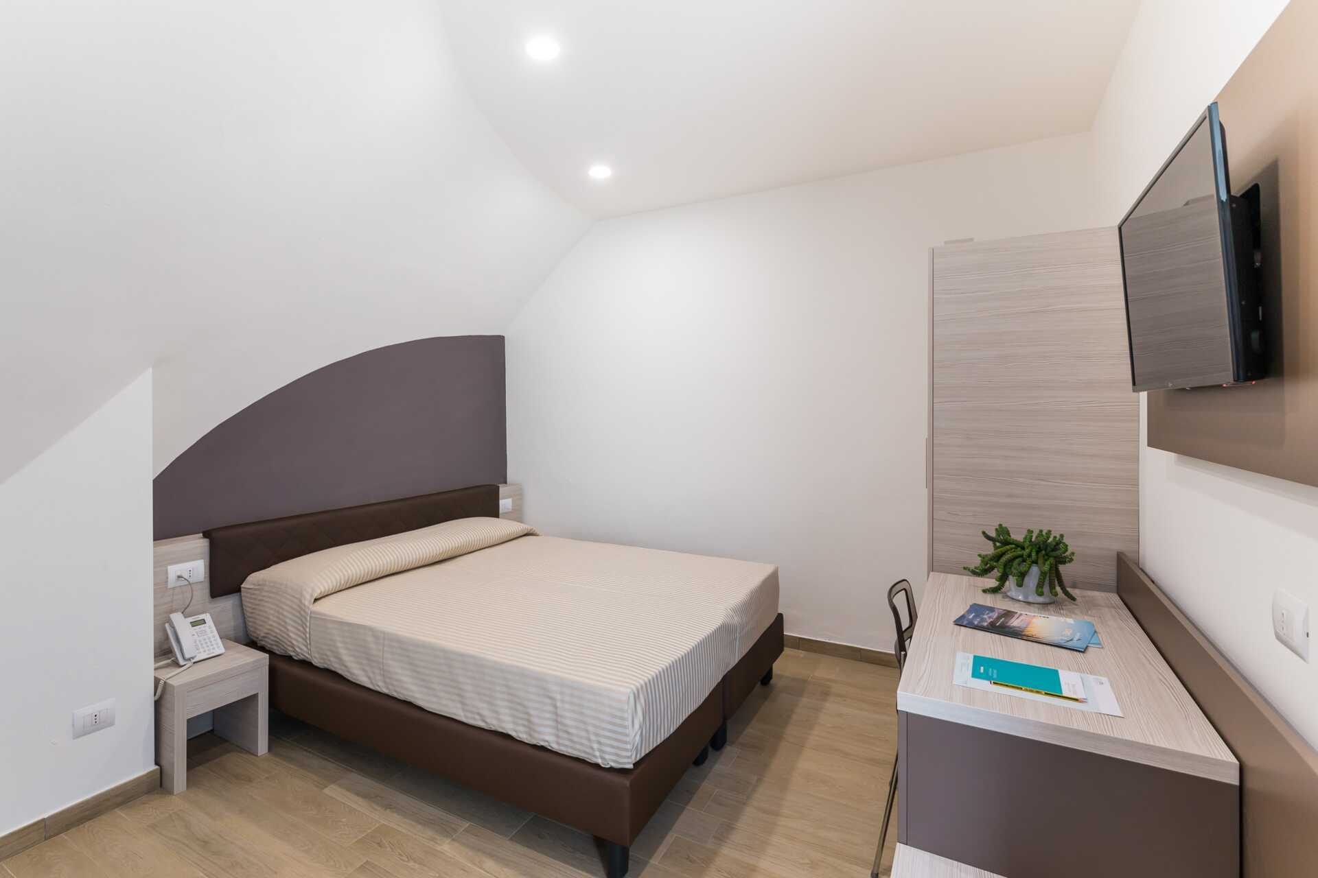 Kahden hengen huone maaterassilla. Parivuode, lisävuoteen mahdollisuus vuodesohvaan. Maksuton wifi, tallelokero ja ilmastointi. Minibaari. Tv. Hiustenkuivain. Kylpyhuoneessa suihku ja wc. Siivous 5 krt/viikko.
