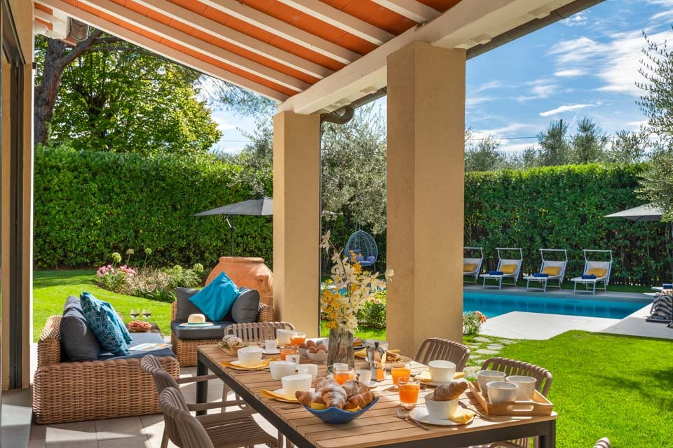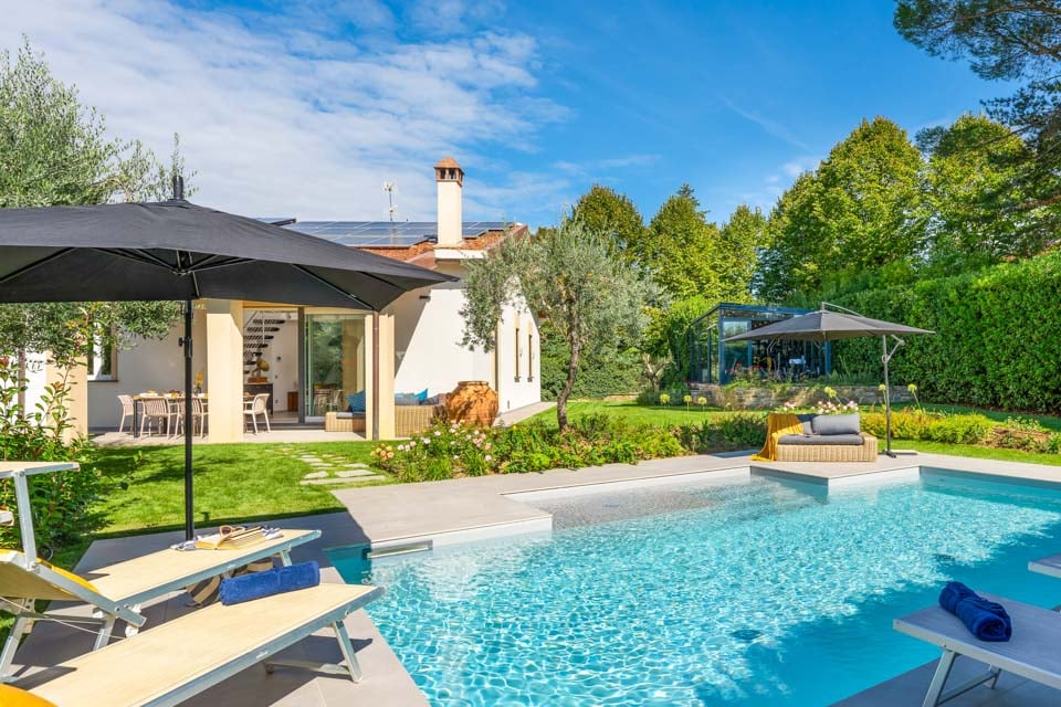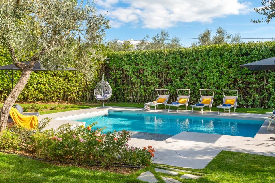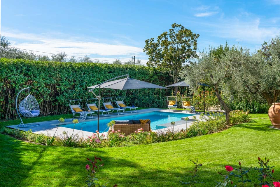 Ulkona vieraat voivat nauttia virkistävästä pulahduksesta yksityisen uima-altaan kristallinkirkkaisiin vesiin rehevän kasvillisuuden ja aurinkotuolejen keskellä. Puutarha on ihanteellinen ulkoilmaruokailuun tai rauhalliseen aamukahvin nauttimiseen, ja ulkopuolelta kuljettava kuntosali ja pingispöytä tarjoavat mahdollisuuksia aktiiviseen ja viihtyneeseen oleskeluun.