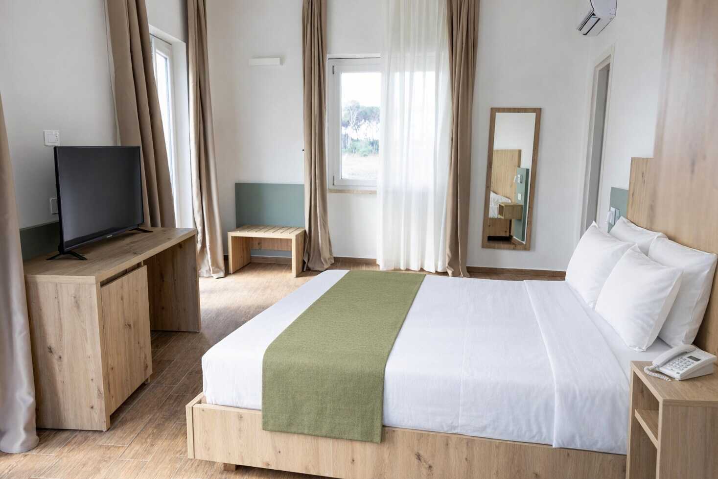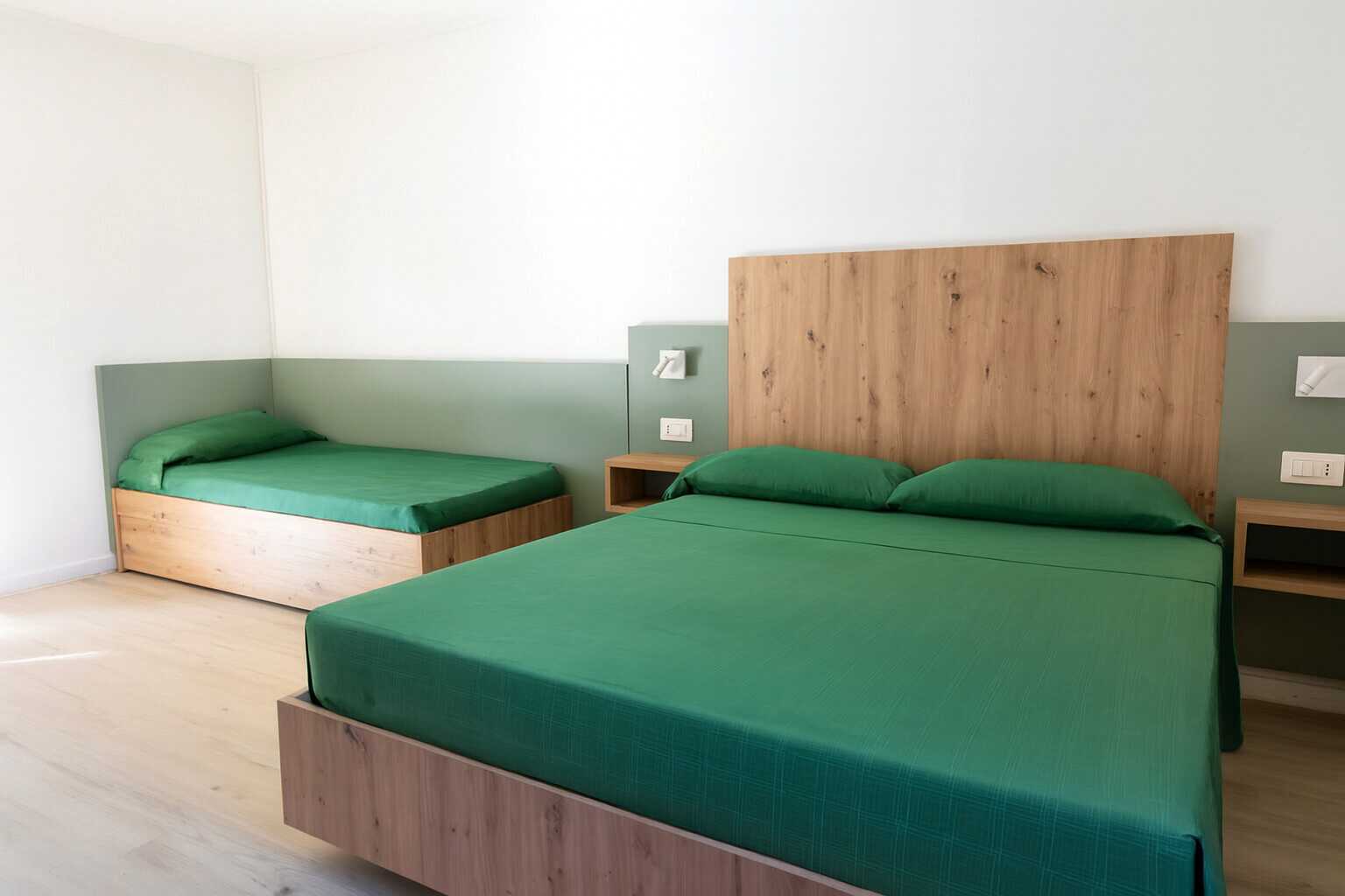 Kahden hengen huone parvekkeella tai terassilla. Parivuode. Lisävuodemahdollisuus yhden hengen vuoteessa. Maksuton wifi, ilmastointi ja tallelokero. Jääkaappi. Vedenkeitin, kahvia ja teetä. Tv kansainvälisillä kanavilla. Hiustenkuivain. Suihku ja wc. Siivous 7 krt/viikko. Kahden hengen huoneet sijaitsevat Sole-, Oasi- ja Niso-rakennuksissa.