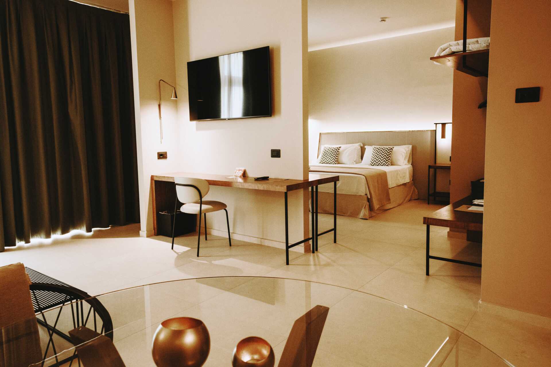 Juniorsviitti parvekkeella. Parivuode tai kaksi yhden hengen vuodetta. Vuodesohva. Maksuton wifi, ilmastointi ja tallelokero. Tv. Minibaari. Hiustenkuivain. Suihku ja wc. Siivous 7 krt/viikko.