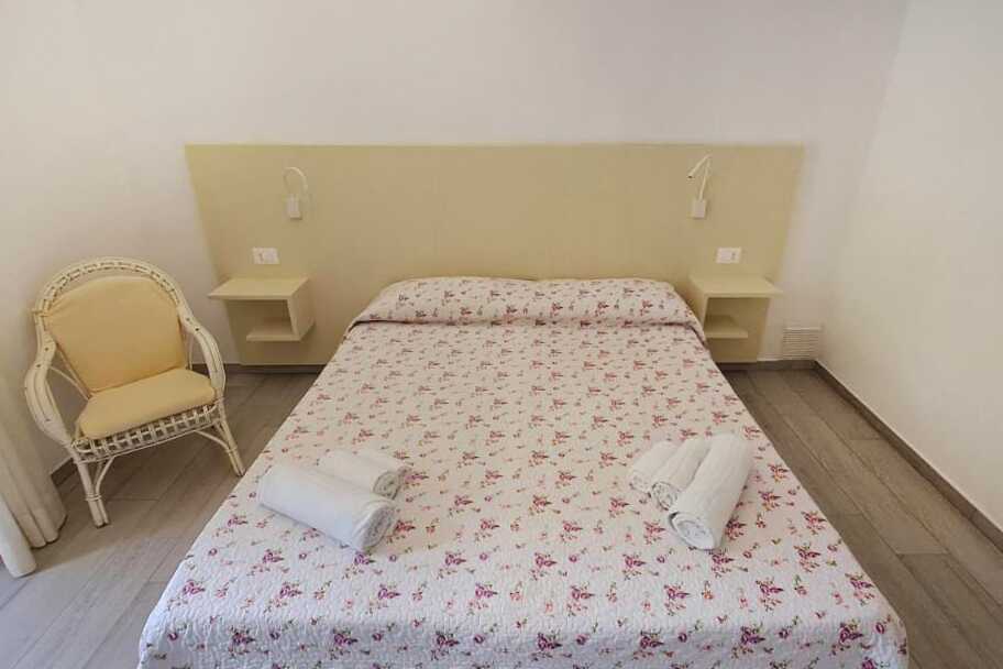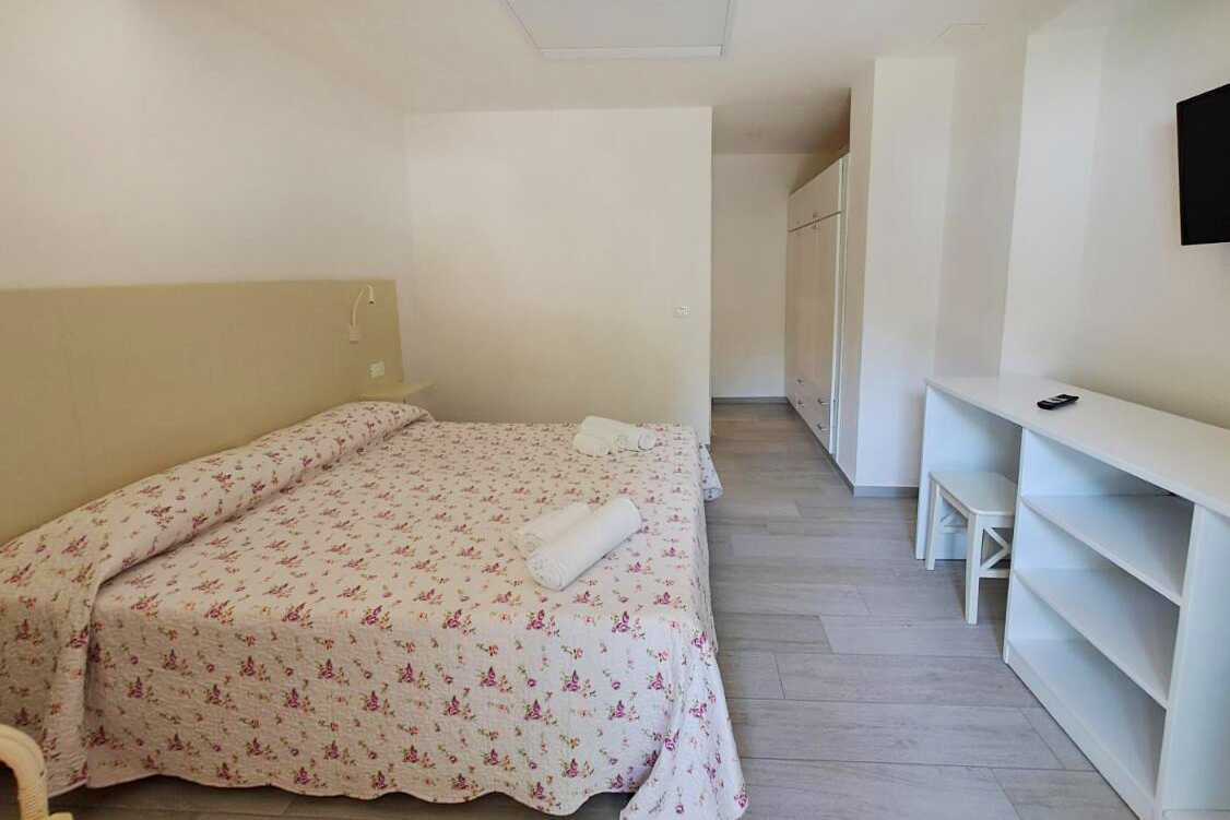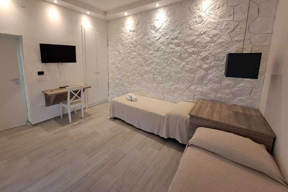 Perhehuone parvekkeella. Perhehuoneessa on kaksi makuuhuonetta. Toisessa makuuhuoneessa on parisänky ja toisessa kaksi erillistä sänkyä. Lisävuodemahdollisuus. Maksuton wifi, ilmastointi ja tallelokero. Tv paikallisilla kanavilla. Suihku ja wc. Siivous 7 krt/viikko.