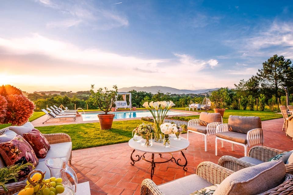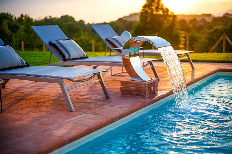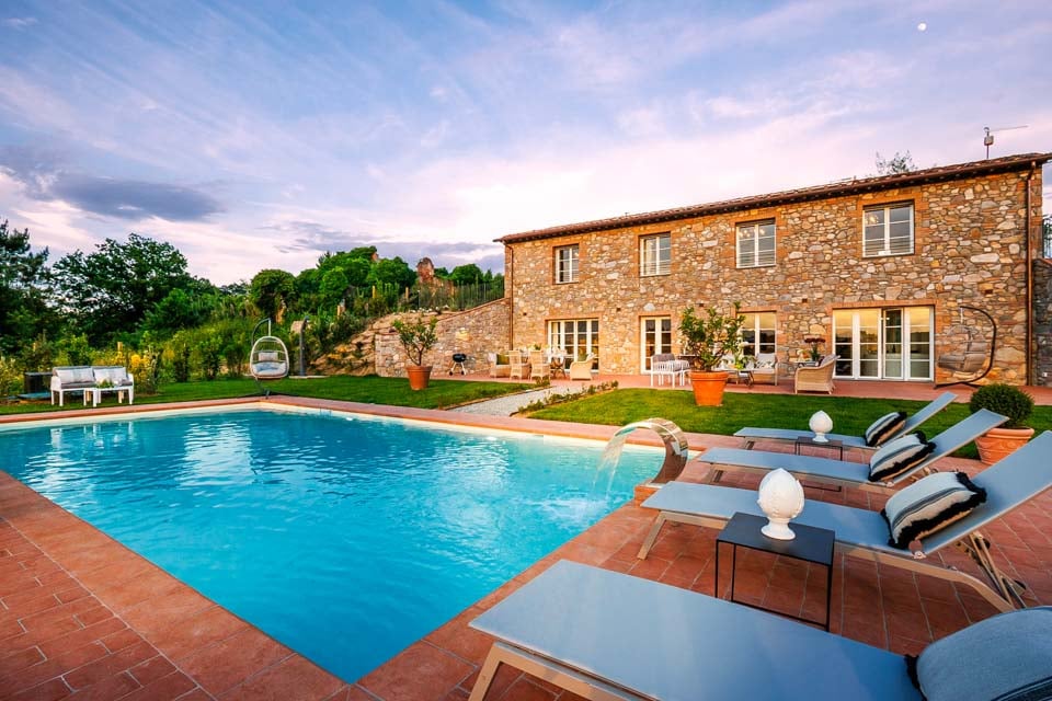 Ulkona odottaa suuri yksityinen uima-allas, jossa on lempeät portaat ja rauhoittava selkähierontasuihku. Uima-allasta ympäröi kauniisti maisemoitu puutarha, jossa on aurinkotuoleja, ulkovuode ja puutarhasohvia – loistavia paikkoja nauttia Toscanan auringosta tai illasta tähtien alla.