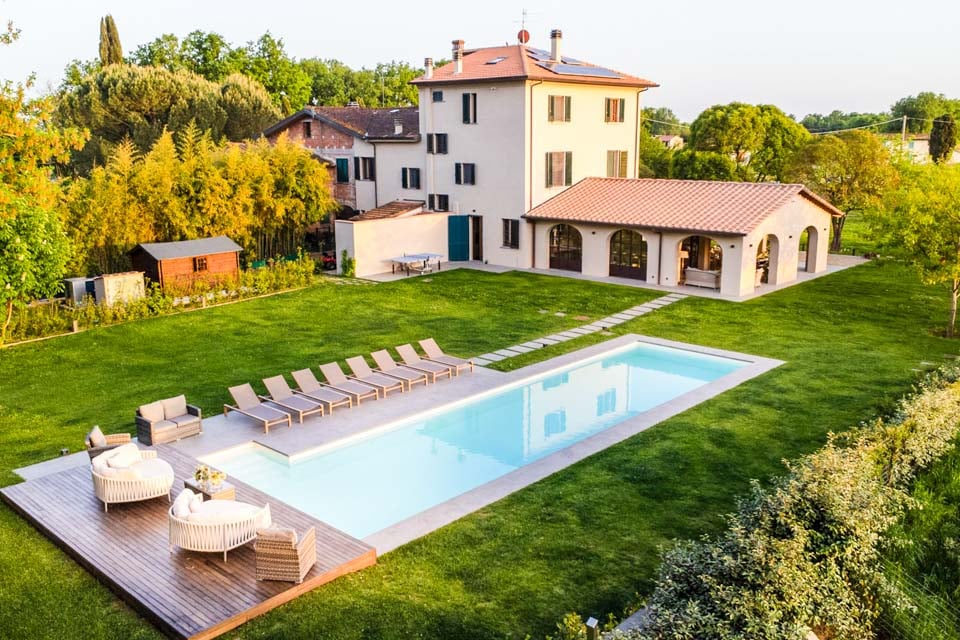 Vielä vaikuttavampi kuin upea puutarha ja uima-allasalue, sinut räjäyttää kuinka viehättävä tämän huvilan sisustus on. Korkeiden puisten kattopalkkien, valtavien ikkunoiden ja vaaleiden kalusteiden ansiosta avoin olohuone ja ruokailutila pysyvät luonnollisen valoisina koko päivän, minkä ansiosta se tuntuu kaipaamaltasi lämpimältä ja kutsuvalta keitaalta. Jättimäisen ruokapöydän ääressä sinulla on täydellinen paikka nauttia aterioista ja herkutella kaikkien ystäviesi ja perheesi kanssa kokkailtuasi myrskyn lailla täysin varustellussa keittiössä. Jos sisätilat eivät ole tarpeeksi jännittäviä aterioillesi, älä missaa tilaisuutta ruokailla ulkona, sillä upea italialainen ilma tekee herkullisista herkuistasi entistäkin herkullisempia. Pura viimeisetkin energiasi pelaamalla pöytätennistä ennen nukkumaanmenoa – täydellinen paikka pienelle kilpailulle ennen nukkumaanmenoa kutsuvissa makuuhuoneissa. Kun lakanat ovat niin pehmeät, et halua maata niissä iltapäivään asti!