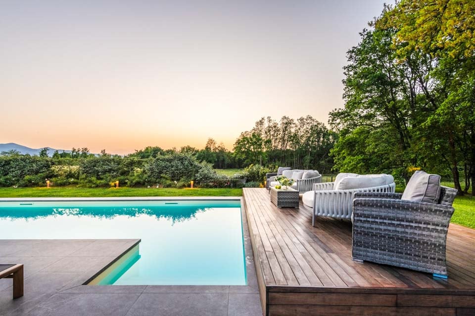 Missä olisikaan parempi rentoutua kauniin Italian auringon alla kuin omalla uima-altaalla? Pulahda kirkkaansinisiin vesiin milloin haluat, ne ovat kaikki sinun pulahtaessasi niihin milloin haluat! Nautitpa sitten aamu-uinnista, vesileikeistä iltapäivällä rakkaittesi kanssa tai iltapulahduksesta kauniin hämärän taivaan alla, olet parhaassa paikassa luoda unohtumattomia muistoja ja rakastua tähän upeaan Toscanan alueeseen. Hyödynnä laajan puutarhan yllä kohoavien korkeiden puiden varjoa aloittamalla kirjan lukeminen tai vain torkkumalla auringolta suojautuen – iltapäiväsi eivät ole koskaan olleet näin rauhallisia.