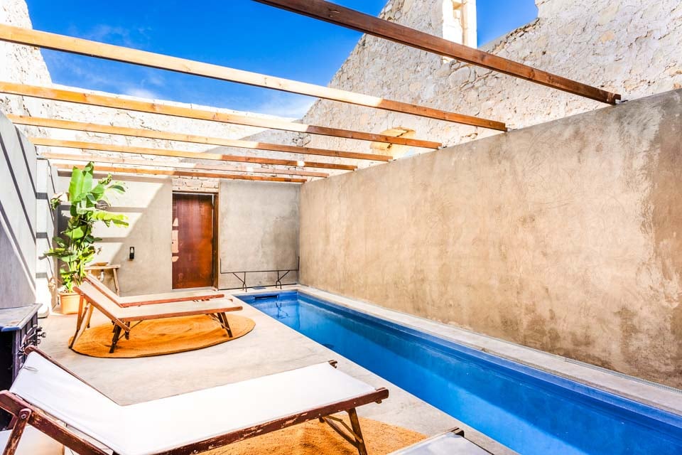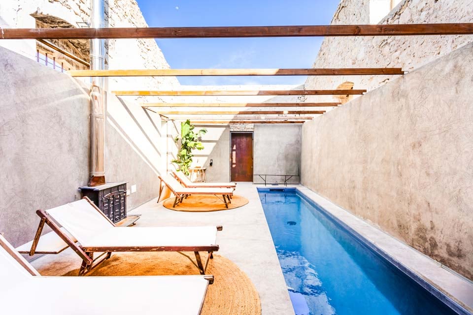 Jokainen kiinteistön nurkka kertoo tarinan alkuperäisine lattiapintoineen, paljaine kiviseinineen ja huolellisesti säilyneine arkkitehtonisine yksityiskohtineen, jotka antavat huvilalle sen raa'an, maalaismaisen ilmeen. Sisustus on minimalistinen ja rauhallinen, ja siinä on alkuperäiset piirteet keskipisteenä, mutta se tarjoaa mukavuutta ja yksinkertaisuutta.