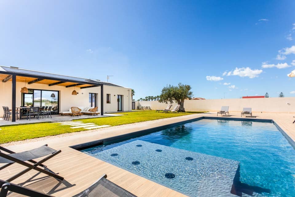 Huvilassa on neljä tyylikästä makuuhuonetta, joissa kaikissa on ilmastointi viileyden säilyttämiseksi lämpiminä kuukausina. Sisätilat ovat raikkaat ja modernit, yhdistäen mukavuutta ja yksinkertaisuutta, ja ulkotila on se, missä tämä kiinteistö todella loistaa. Suuri yksityinen uima-allas sijaitsee valtavan puutarhan sydämessä, ja siellä on runsaasti varjoisia ja mukavia paikkoja rentoutumiseen, lukemiseen tai kylmän nauttimiseen auringonlaskun aikaan.