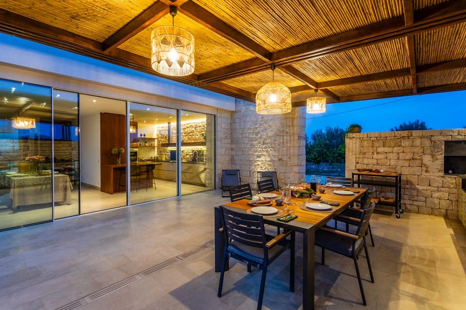 Ulkona huvila pääsee todella oikeuksiinsa. Talon ympärillä on laaja puutarha, joka kehystää upean T-muotoisen uima-altaan – ihanteellinen pitkiin, laiskottelupäiviin Sisilian auringon alla. Allaspyyhkeet ovat käytettävissäsi, ja grilli ulkoruokailutilalla kutsuu nauttimaan lämpimistä illoista hyvän ruoan ja seuran parissa.