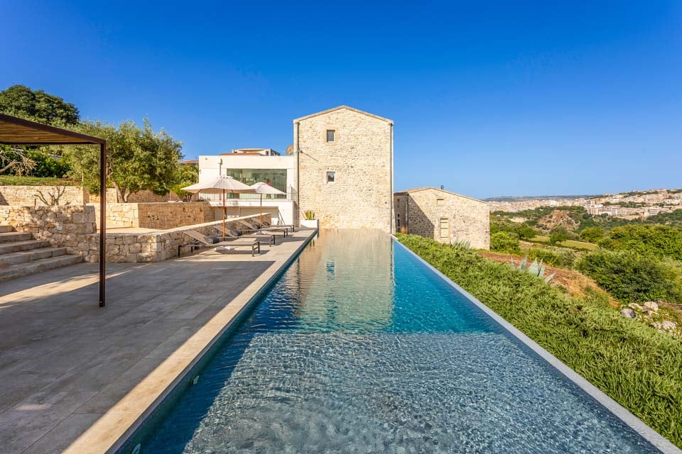 Tervetuloa Villa Sicilian Skyhin, jossa Itä-Sisilian raaka kauneus kohtaa rohkean, modernin muotoilun. Laajojen maaseutunäkymien äärellä sijaitseva kolmen makuuhuoneen loma-asunto yhdistää maalaismaisen viehätyksen moderniin tyyliin – ajattele paljaita kiviseiniä, puhtaita linjoja ja korkealaatuisia viimeistelyjä, jotka tuntuvat sekä maanläheisiltä että hienostuneilta.