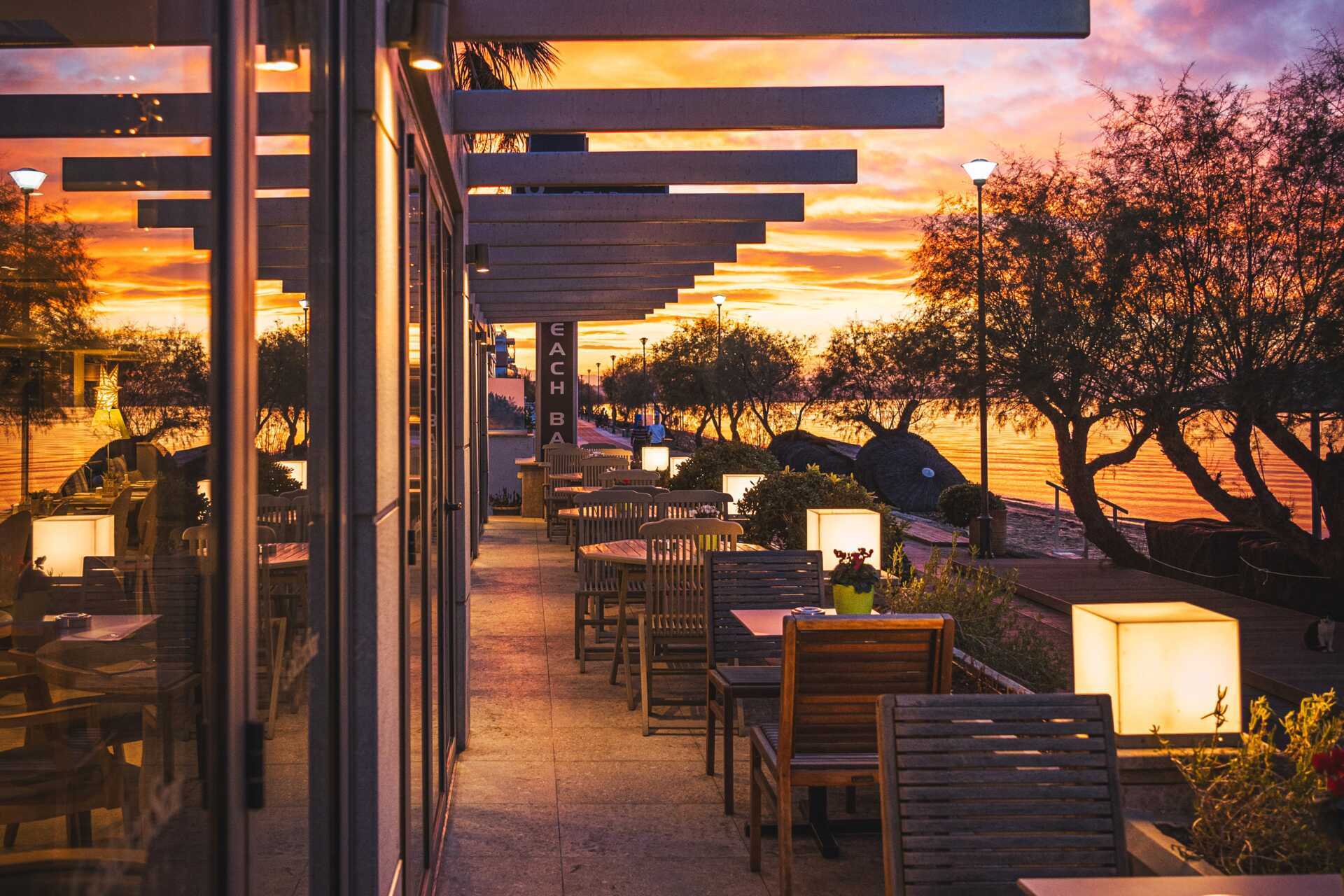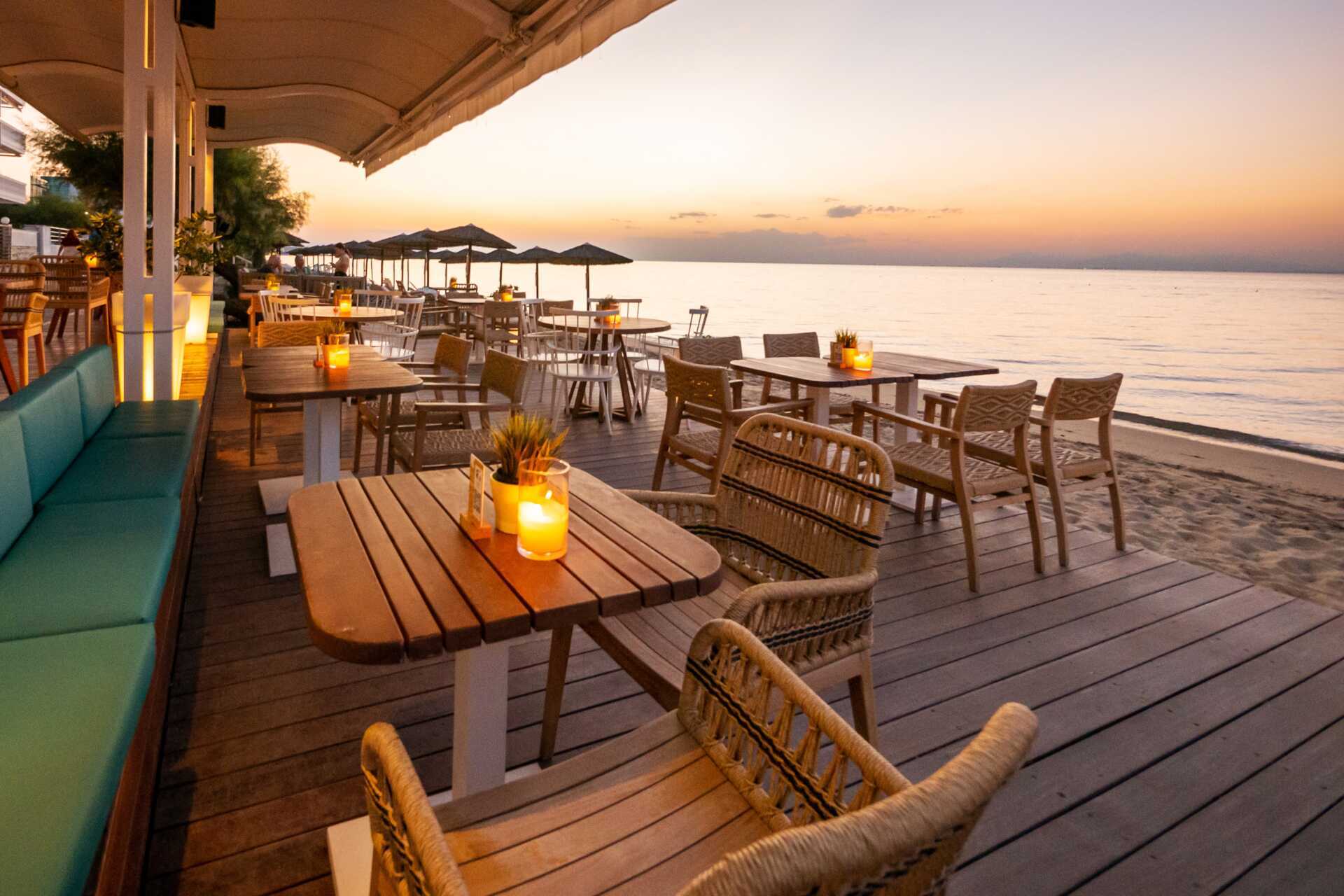 Ravintolassa tarjoillaan parhaita kreikkalaisia ruokia yhdistettynä muihin Välimeren keittiöin herkkuihin. Täällä voit nauttia sekä hyvän aamiaisbuffetin, lounaan että à la carte -illallisesta varpaat hiekassa. Hotelli aamiainen on sertifioitu kreikkalainen aamiainen, joka tarjoaa tuoksuja ja makuja luomu- ja paikallisista tuotteista sekä paikallisista herkuista. Baari on täydellinen paikka nauttia välipaloja, hyvää kahvia tai muuta juomaa ja loungemusiikin säestyksellä.