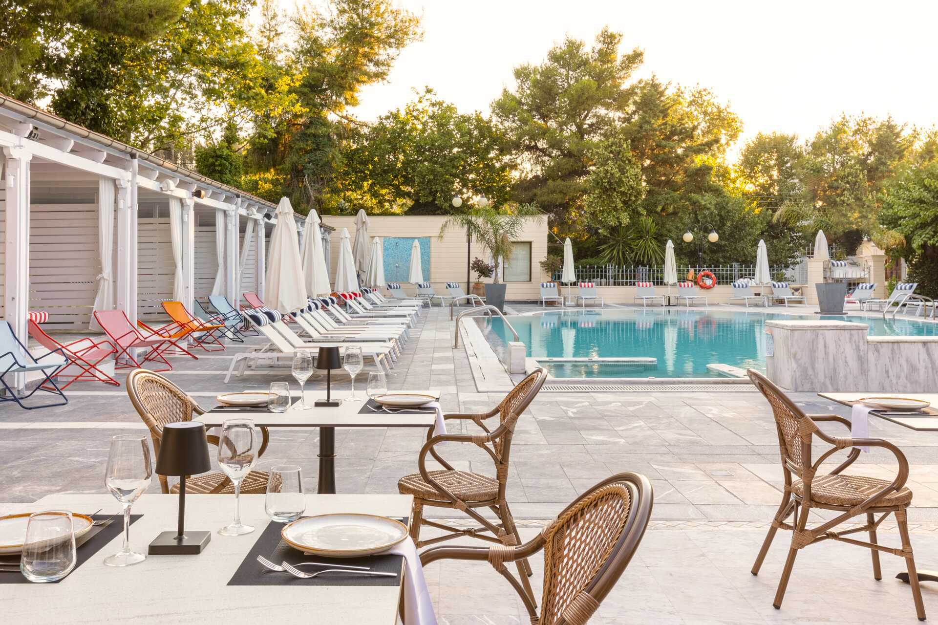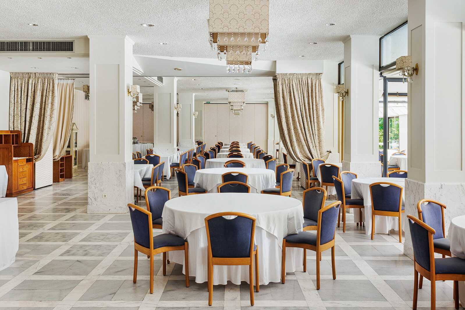 Hotellin buffet-ravintolassa tarjoillaan aamupala ja illallinen , ja siellä tarjoillaan parhaita kreikkalaisia herkkuja. Löydät myös italialaisen à la carte -ravintolan, jonka ruokalistalla on sekä pastaa että pizzaa, mereneläviä ja liharuokia. Aulabaari. Allasbaarissa on juomia, ja täältä voit myös tilata kevyempää syötävää listalta. Kerran viikossa järjestetään kreikkalainen ilta.