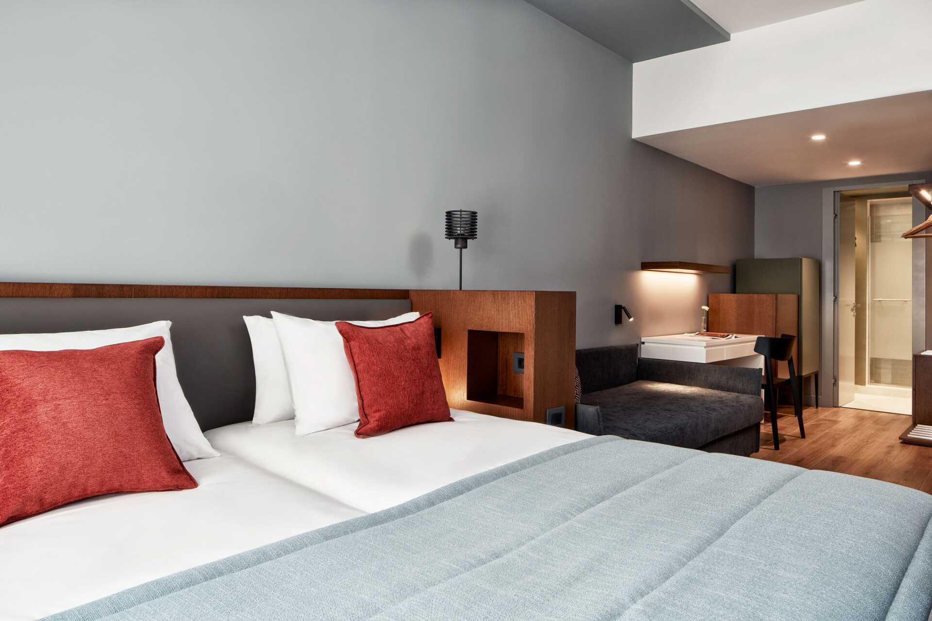 Neljän hengen huone, ei ulkotilaa. Parivuode tai kaksi erillistä sänkyä. Kaksi vuodesohvaa. Maksuton wifi, ilmastointi ja tallelokero. Jääkaappi. Tv kansainvälisillä kanavilla. Hiustenkuivain. Kylpyhuoneessa suihku ja wc. Siivous 6 krt/viikko.
