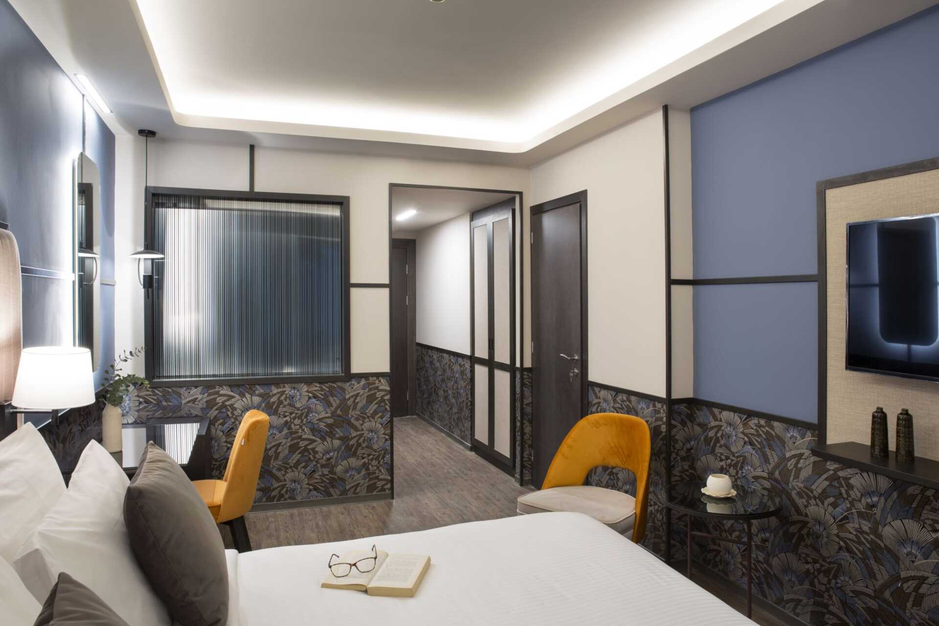 Executive-huone, ei ulkotilaa. Parivuode tai kaksi yhden hengen sänkyä. Maksuton wifi, ilmastointi ja tallelokero. Jääkaappi. Vedenkeitin, kahvia ja teetä. Espresso kahvinkeitin. Tv kansainvälisillä kanavilla. Silitysrauta ja -lauta. Hiustenkuivain. Kylpyhuoneessa suihku ja wc. Siivous 7 krt/viikko. Alle 2-vuotiaat lapset lasketaan lisävuoteella majoittuviksi henkilöiksi.