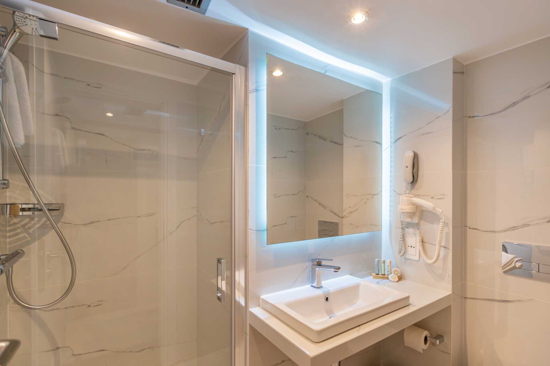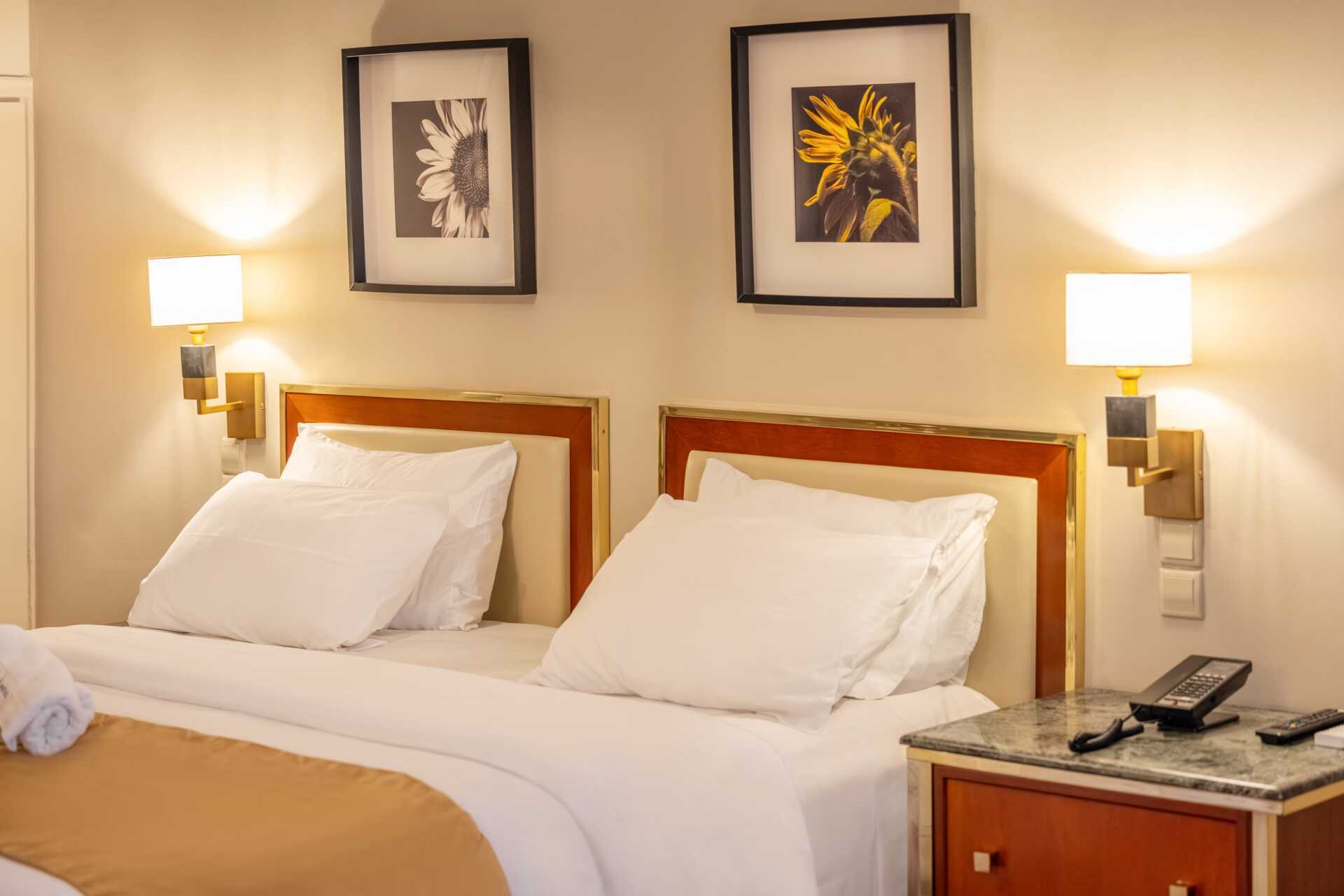 Kahden hengen huone, jossa parveke. Parivuode tai kaksi erillistä sänkyä. Lisävuodemahdollisuus kokoontaitettavaan sänkyyn. Maksuton wifi, ilmastointi ja tallelokero. Minibaari, olut ja virvoitusjuomat ovat saatavilla saavuttaessa, täyttö lisämaksulla. Vedenkeitin, kahvia ja teetä. Nespresso-keitin - kapselit mukana ja täytetään päivittäin. Tv kansainvälisillä kanavilla. Äänieristetyt ikkunat. Kylpytakki. Hiustenkuivain. Kylpyhuoneessa suihku ja wc. Siivous 6 krt/viikko.