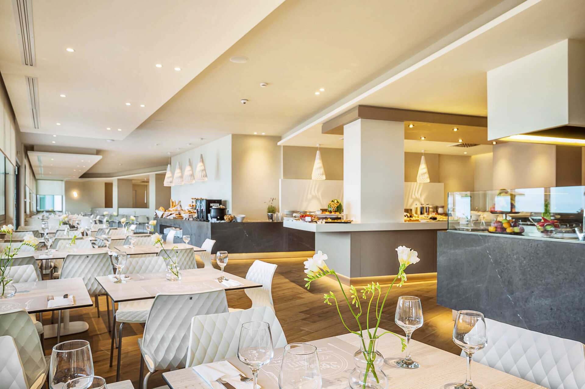 Ankunft: Wir sind von Anfang an super freundlich empfangen worden. Um das Gepäck hat sich der nette, zuvorkommende Page gekümmert und das einchecken war schnell und unkompliziert. Auch das Zimmer wurde uns deutlich früher zur Verfügung gestellt, als die vom Hotel angegebene Check In Zeit (15 Uhr). Zur Überbrückung hat man uns in der Zwischenzeit mit Strandtüchern und einer Zugangskarte ausgestattet, so das wir direkt nach unsere Ankunft vormittags an den Strand konnten und uns von den Reisestrapazen etwas erholen konnten. Zimmer: Das Zimmer (eine der 14 Penthaus-Suiten) hat uns (vierköpfige Familie) vom ersten Moment an vollends überzeugt! Alles ist wirklich wie es auf den Bildern zu sehen ist. Es fehlt einem an NICHTS und die Aufteilung ist wirklich spitze. Es gab 2 getrennte Schlafzimmer und zu jedem Schlafzimmer auch ein eigenes Bad. Die Kids haben im „Wohnzimmer“ geschlafen, dort steht bei Nutzung zu zweit sonst ein Sofa, das in ein sehr bequemes breites Bett umgewandelt werden kann. TV, Nesspresso-Kaffemaschine, Mini-Bar und ein großer Kliederscharnk ist alles vorhanden. Das Hauptschlafzimmer verfügt über ein Kingsize-Bett, TV, großen Kleiderschrank, einen Hocker, der bei Bedarf ebenfalls zu einem zusätzlichen Einzelbett umfunktioniert werden kann. Alles in allem sehr stimmig aufgeteilt und eingerichtet! Gastronomie: Wir hatten Halbpension gebucht. Diese beinhaltet ein Frühstücks- und Abendbuffet, beides nimmt man im Hauptrestaurant „ESTIA“ im EG zu sich. FRÜHSTÜCKS-BUFFET: Das Frühstücksbuffet ist reichhaltig und bietet unserer Meinung nach genug Auswahl, an allem was das Herz so begehrt. Es gibt herzhaftes (Eier in jeglicher Form z.B. Spiegelei, Rührei, frisch zubereitetes Omlett (Live-Cooking), Speck, Würstchen etc.) süßes (Pancakes, Croissants, Schokobrötchen, French Toast, etc) und gesundes (Obst, Müsli, etc.) Die Getränke wie Kaffee, Kakao, Tee und verschieden Säfte sind zum Frühstück in der Halbpension mit enthalten. ABEND-BUFFET: Genau wie das Frühstücks-Buffet ist dies ebenfalls mehr als ausreichend reichhaltig. Es wird meist in „Themen-Abenden“ angeboten und es gibt jeden Abend die „Live-Cooking-Station“ wo immer etwas frisch zubereitet wird und es für z.B. Kids die am Buffet nicht glücklich werden – immer Pasta mit verschiedenen Soßen gibt. Außerdem kann man das „Tages-Gericht“ (dish of the day) bestellen, welches vom Kellner am Tisch serviert wird. Die Getränke sind hier NICHT inkludiert – haben unserer Meinung nach aber ein Preisniveau, das für ein 5-Sternehotel üblich und in Ordnung ist. Zudem gibt es noch ein „A la Cart Restaurant – Grecos“ wo man auf Reservierung zusätzlich Speisen kann (nicht in HP enthalten). Service: Das komplette Personal war super freundlich, hilfsbereit und zuvorkommend! Besonders hervor zu heben sind die Managerin Katerina, der Manager Stefanos und einer der hervorragenden Köche Vangelis – vielen Dank nochmal für diesen wunderbaren Aufenthalt bei Euch! Aber auch an all die anderen netten Mitarbeiter ein großes Lob für Ihr Engagement und Auftreten. Wir können hier leider nicht jeden einzelnen hier erwähnen, das würde den Rahmen sprengen. Dazu können wir nur sagen – „wie es in den Wald hineinruft, so ruft es auch wieder heraus.“ Zimmerservice ist ebenfalls lobenswert, jeden Tag wurde das Zimmer super gründlich gereinigt und wieder hübsch hergerichtet. Die Handtücher wurden auch jeden Tag gewechselt. Strandhandtücher sind ebenfalls kostenlos und können jeden Tag an der Rezeption gewechselt werden. Liegen am Pool und am Strand sind alle kostenlos und sehr hochwertig! Außerdem ausreichend vorhanden! Freizeit: So noch nie erlebt! Es gab jeden Tag mindestens 2 bis 3 „Aktivitäten“ die angeboten wurden (konnte man sich immer über den TV im Zimmer oder über eine PDF Broschüre informieren). Wenn etwas davon ausgefallen ist z.B. durch schlechtes Wetter, dann wurde eigentlich immer eine Alternative angeboten. Wir müssen dazu sagen, nicht alle Aktivitäten sind kostenlos (siehe kleinen „Kritikpunkt“). Aber, wie bereits erwähnt, „so noch nie erlebt“.....haben wir in unserem kurzen Aufenthalt an drei „Kochkursen“ teilgenommen. Diese wurden kostenlos angeboten und uns wurden Einblicke in die Zubereitung von Speisen gewährt, die die Hotelköche beim Abendbuffet bzw. im „A la Cart Restaurant“ anbieten. Die Kurse waren wirklich sehr schön und haben uns durch die sehr persönliche Atmosphäre sehr gut gefallen. Kritikpunkte: Bei den Aktivitäten könnte man die Preise für die „Ausflüge“ bereits in der PDF Broschüre mit aufnehmen, bzw. besser Kennzeichnen welche Aktivitäten kostenlos sind und welche nicht. Das ist aber für uns schon Jammern auf hohem Niveau. Ansonsten keinerlei KRITIKPUNKTE. Highlights: Aktivitäten, kostenlose, hochwertige Strand- & Pool-Liegen, der super saubere „SANDSTRAND“ und das herrliche, traumhafte Meer (sehr flach abfallend). Wir haben keine eigenen Bilder hoch geladen, da wirklich alles so ist, wie auf den Bildern der offiziellen Homepage zu sehen ist!