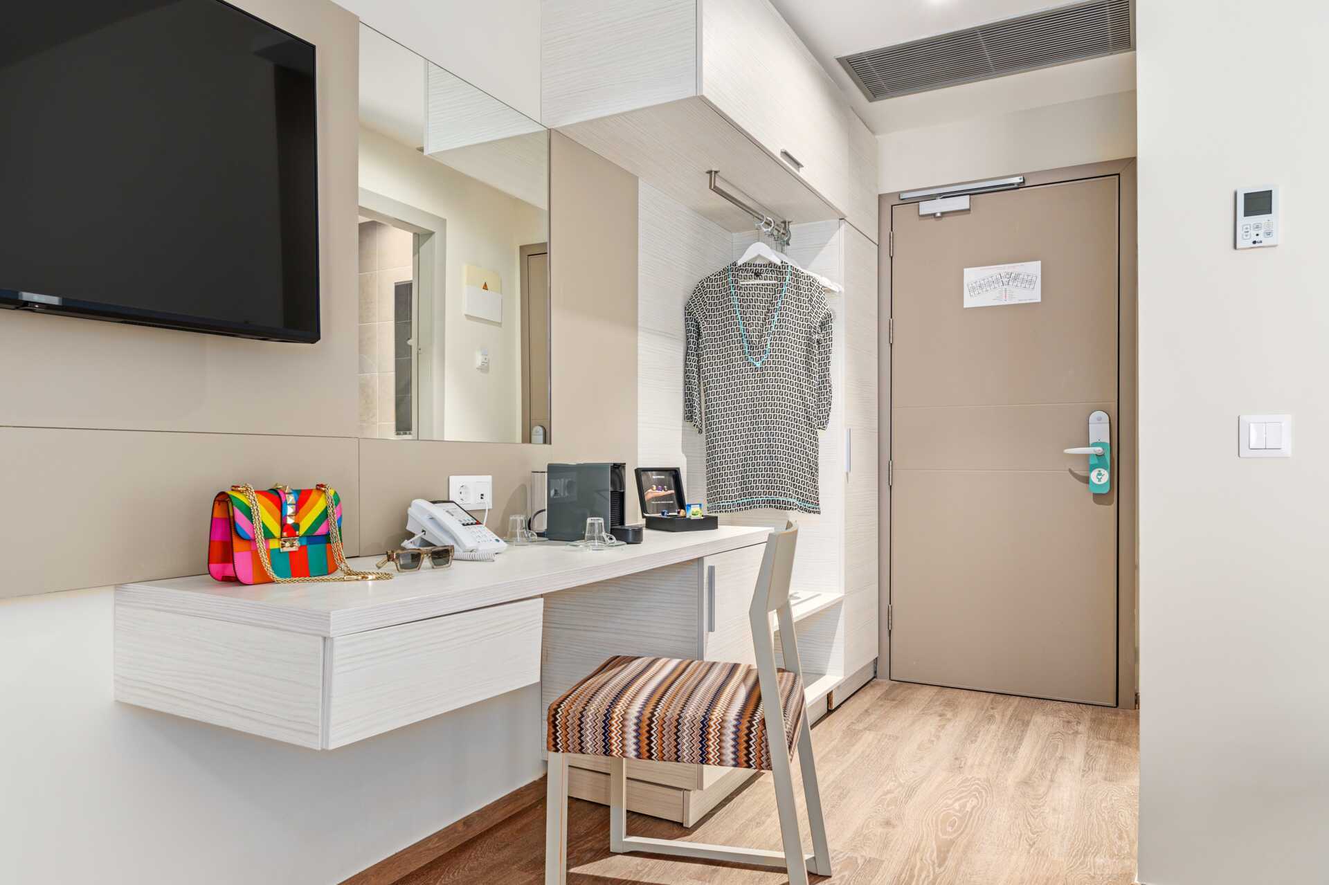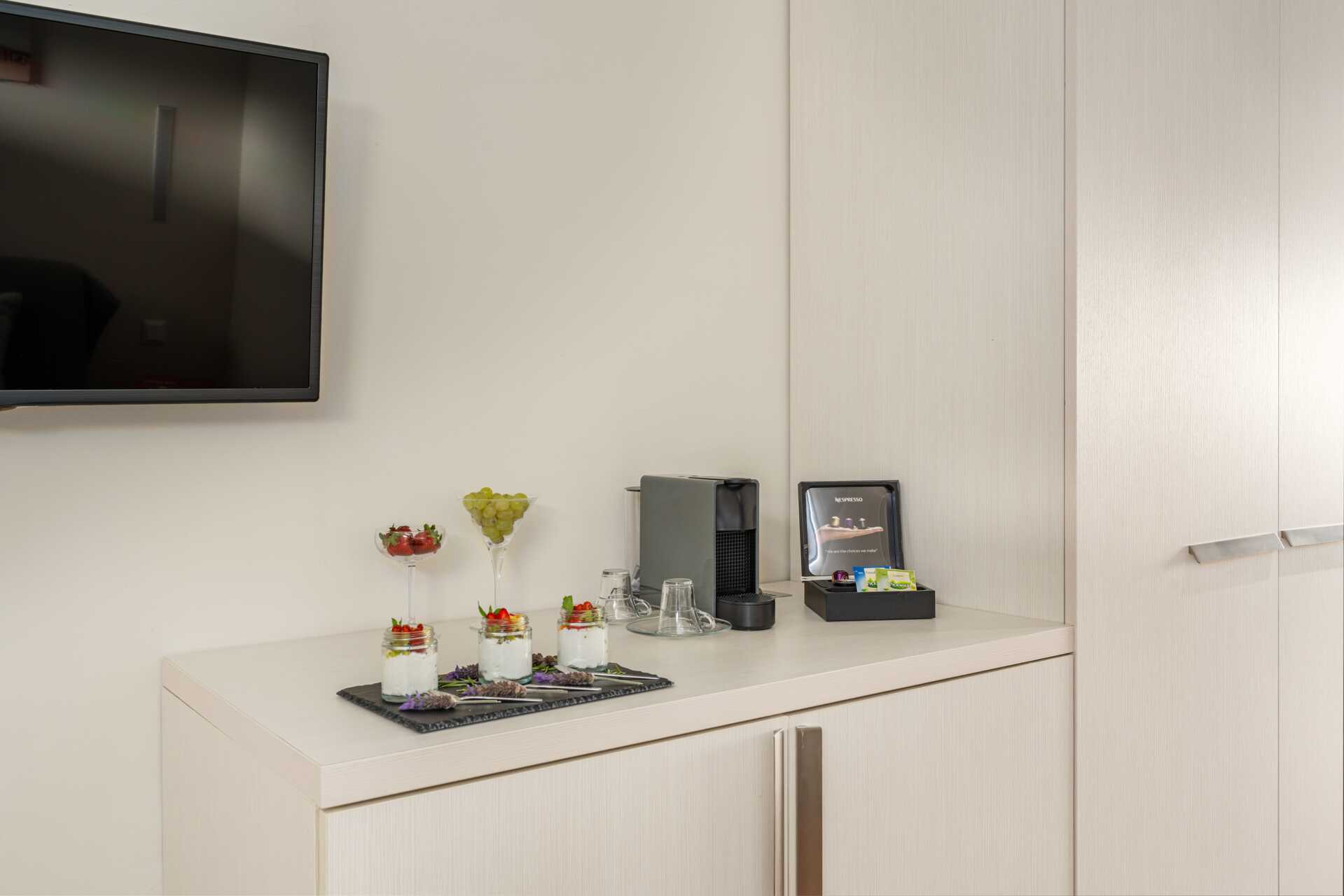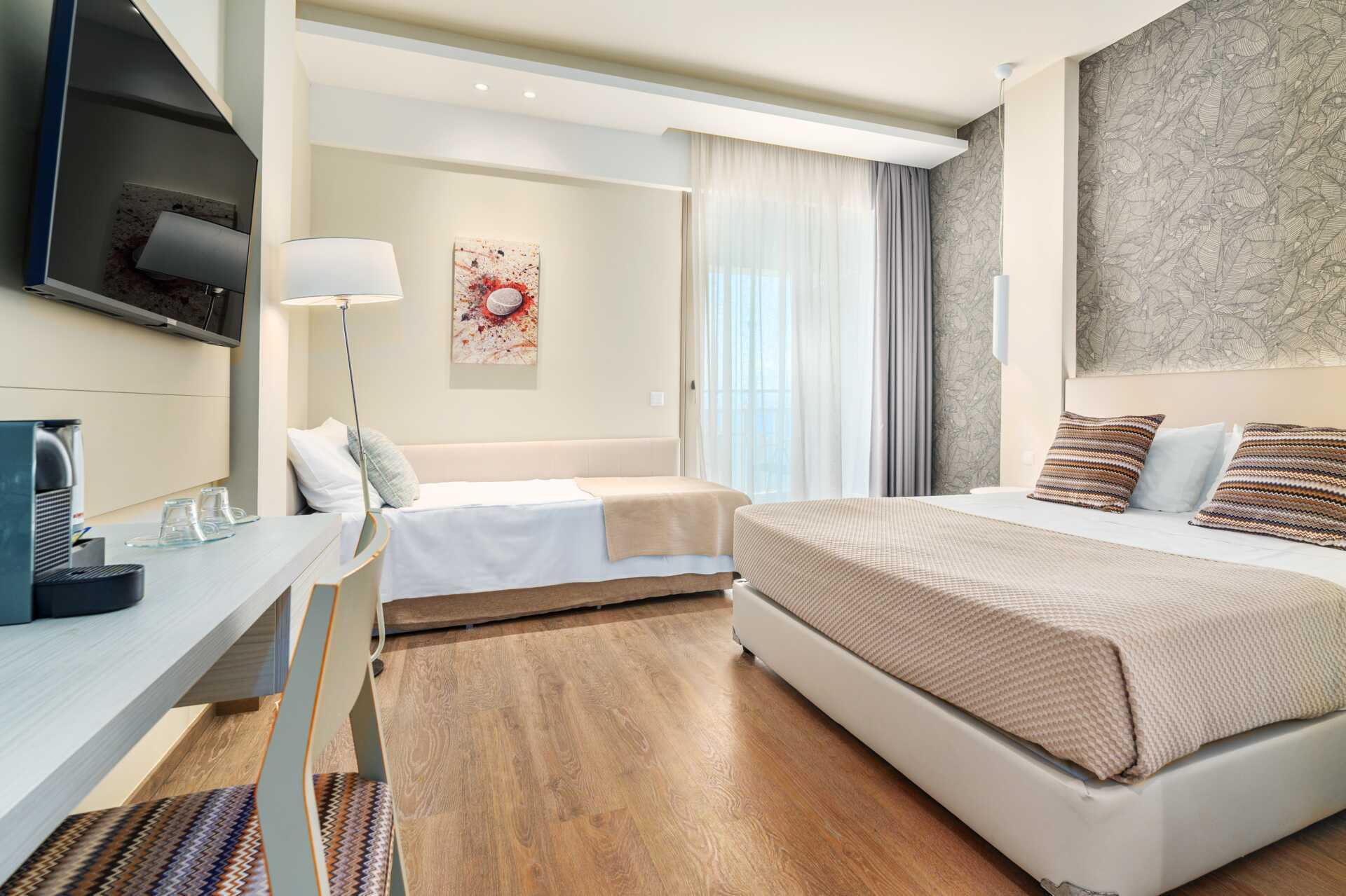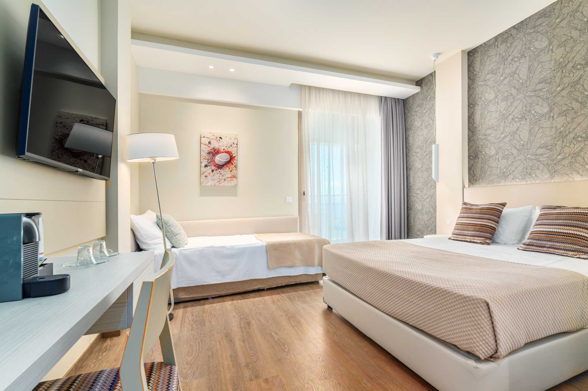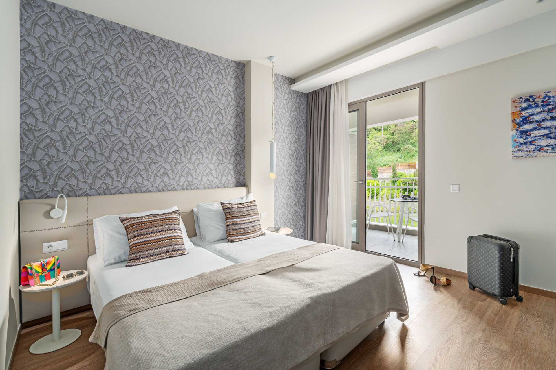 Superior-huone parvekkeella ja merinäköalalla. Parivuode tai kaksi yhden hengen sänkyä. Lisävuodemahdollisuus vuodesohvasta. Tyynymenu. Maksuton wifi, ilmastointi ja tallelokero. Jääkaappi. Minibaari sisältyy saapumisen yhteydessä - täyttö lisämaksulla. Vedenkeitin, kahvia ja teetä. Nespresso-kahvinkeitin kapseleilla saavuttaessa - täyttö lisämaksusta. Tv kansainvälisillä kanavilla. Kylpytakit ja tossut. Hiustenkuivain. Kylpyhuoneessa suihku ja wc. Siivous 7 krt/viikko.
