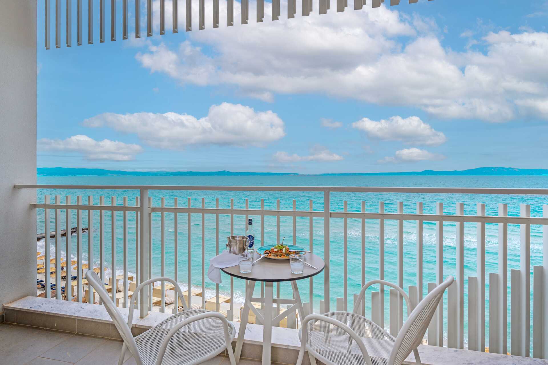 Penthouse Suite parvekkeella ja merinäköalalla. Sviitit sijaitsevat hotellin ylimmissä kerroksissa ja koostuvat kahdesta makuuhuoneesta. Rannalla olevat bali-vuoteet sisältyvät hintaan. Parivuode tai kaksi erillistä vuodetta molemmissa makuuhuoneissa. Tyynymenu. Maksuton wifi, ilmastointi ja tallelokero. Jääkaappi. Täytetty minibaari saavuttaessa. Myöhempi täyttö lisämaksusta. Vedenkeitin, kahvia ja teetä. Nespresso-kahvinkeitin kapseleilla saavuttaessa - täyttö lisämaksusta. Tv kansainvälisillä kanavilla. Kylpytakit ja tossut. Hiustenkuivain. Kaksi kylpyhuonetta, joissa on suihku ja wc. Siivous 7 krt/viikko.