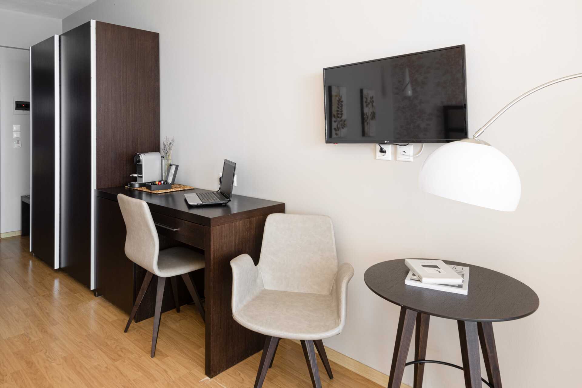Kahden hengen huoneita, parvekkeella ja rajoitetulla merinäköalalla. Parivuode tai kaksi yhden hengen sänkyä. Maksuton wifi, ilmastointi ja tallelokero. Jääkaappi. Tv kansainvälisillä kanavilla. Hiustenkuivain. Kylpyhuone kylpyammeella ja wc. Siivous 7 krt/viikko.
