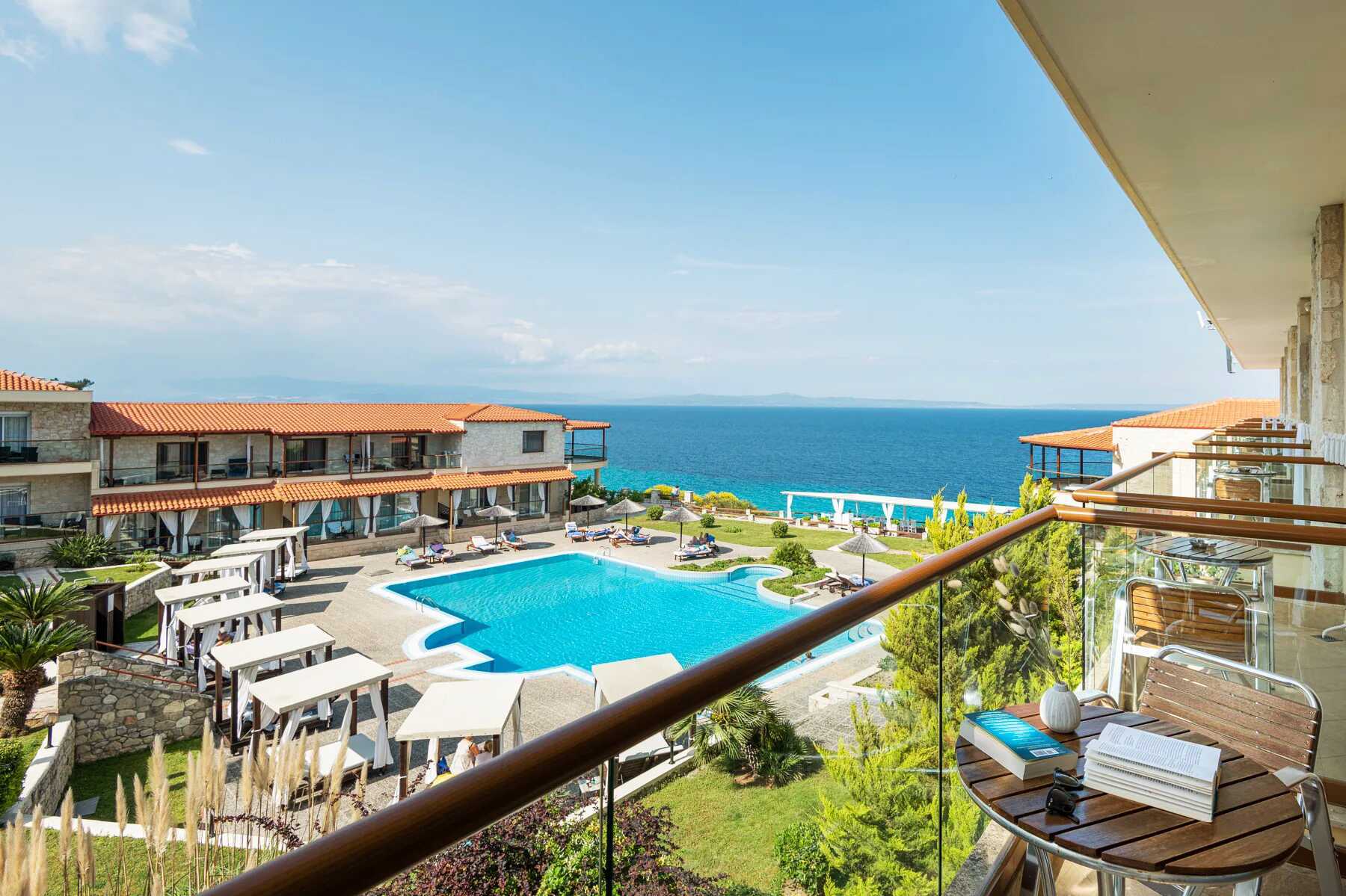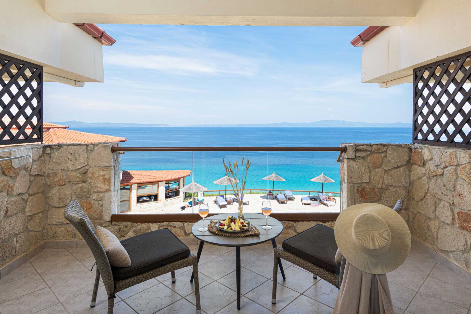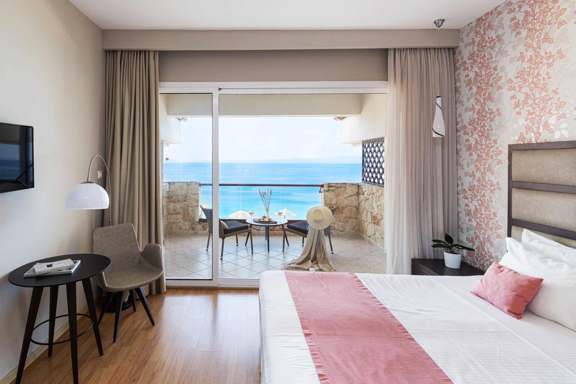 Juniorsviitti parvekkeella ja merinäköalalla. Juniorsviitti koostuu makuuhuoneesta, jossa on oleskelutila. Parivuode. Lisävuodemahdollisuus vuodesohvasta. Maksuton wifi, ilmastointi ja tallelokero. Jääkaappi. Vedenkeitin, kahvia ja teetä. Tv kansainvälisillä kanavilla. Kylpytakit ja tossut. Hiustenkuivain. Kylpyhuoneessa suihku tai kylpyamme ja wc. Siivous 7 krt/viikko.